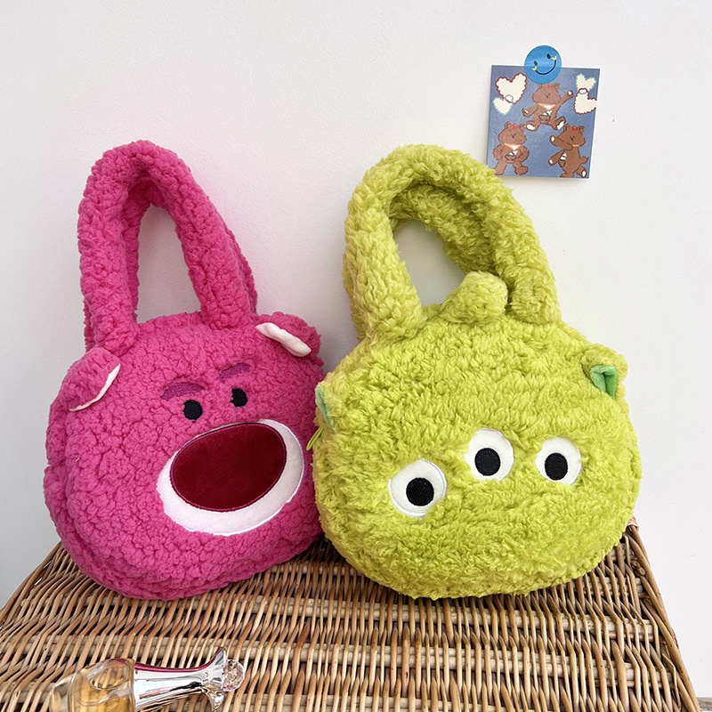 New Cute Children's Plush Bag Korean Version of Strawberry Bear Lotso Handbag Cartoon Winnie Girls Cute Pooh Lamb Velvet Bags