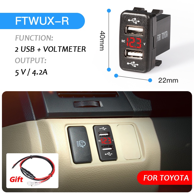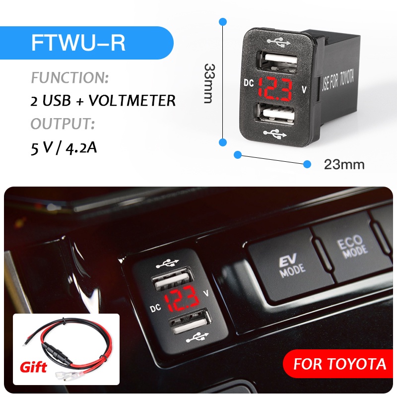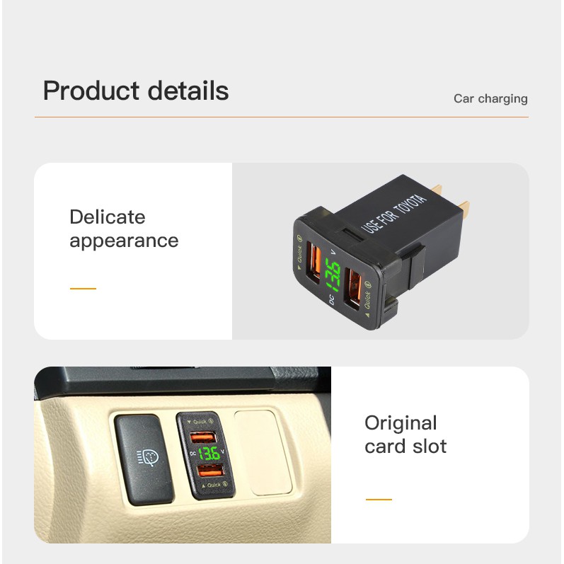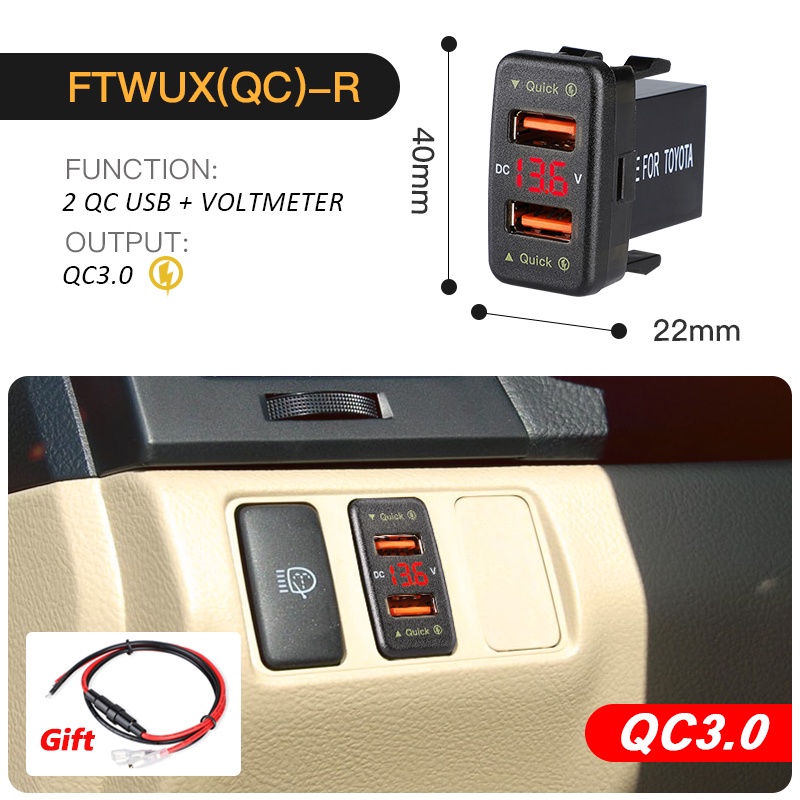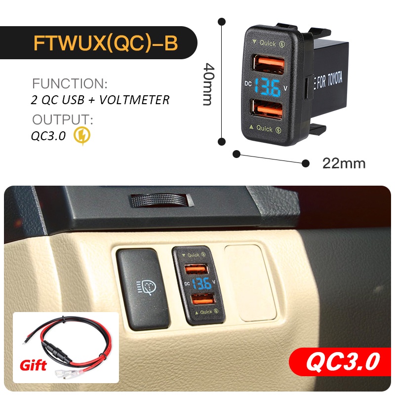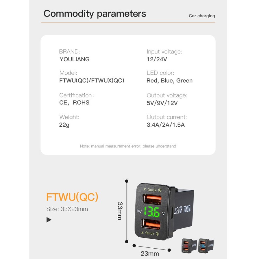New Dual USB QC Car Socket toyota usb port fast charger 12-24V Voltmeter LED Power Adapter For Mobile Phone Bluetooth