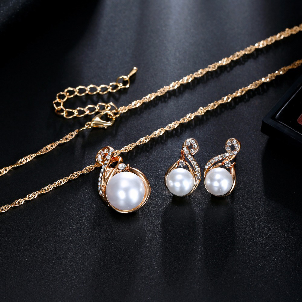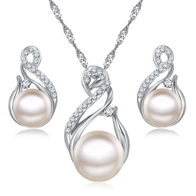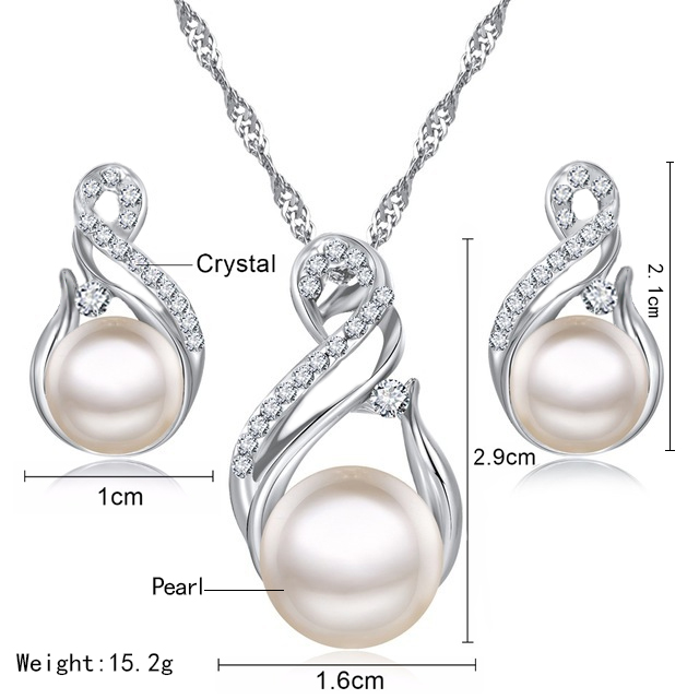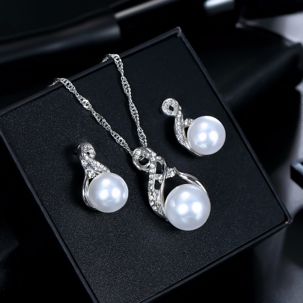 New European and American Geometric Infinity Pearl & Diamond Necklace and Earring Set - Wedding Bride Jewelry