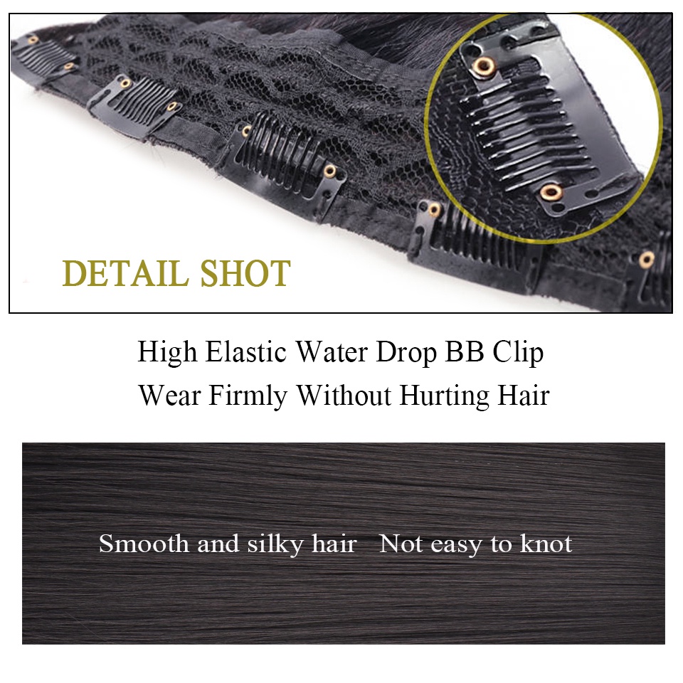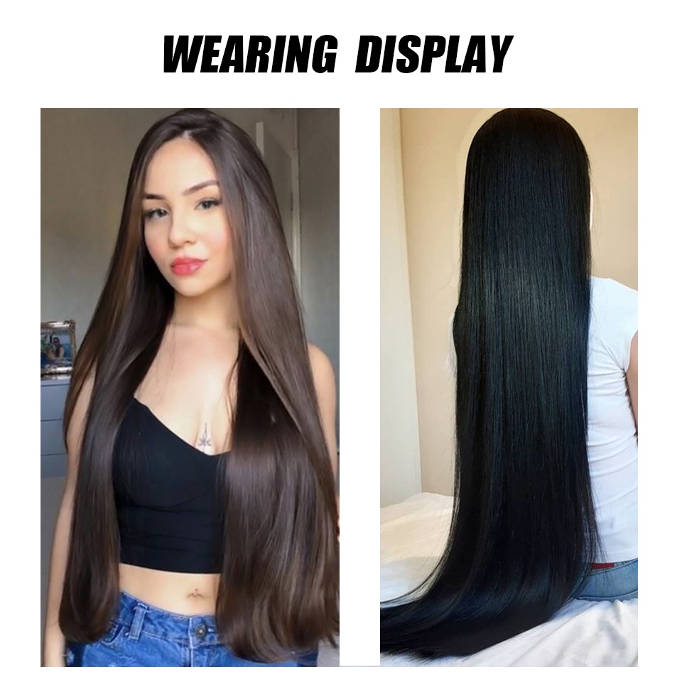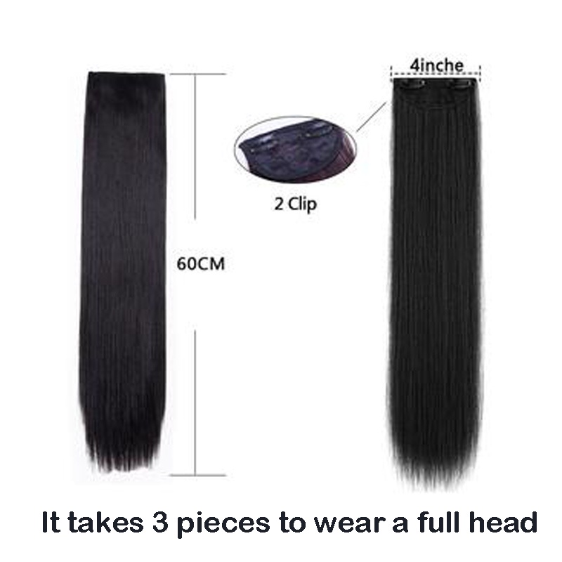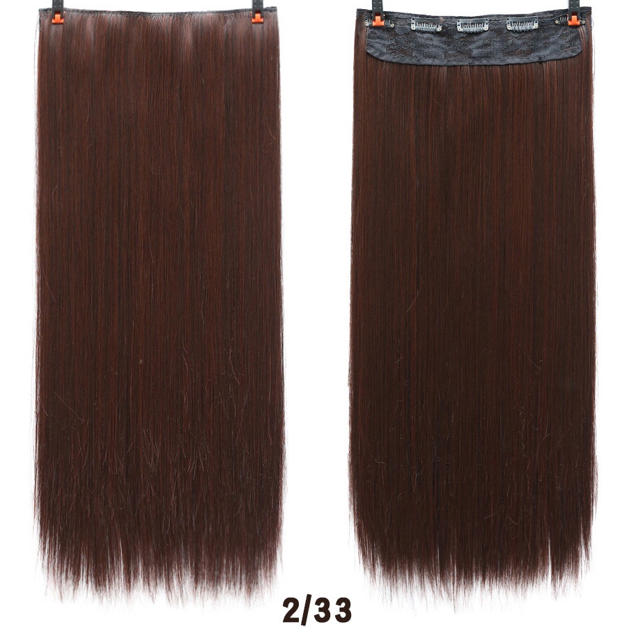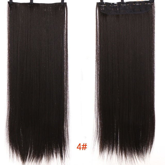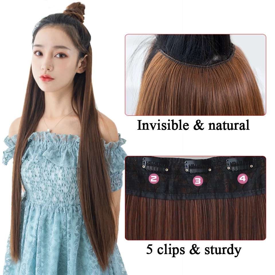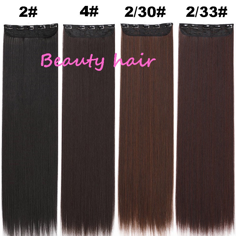 New Fashion 100cm Long Straight 5 Clip in Hair Extensions Heat Resistant Synthetic Hair Piece Black Brown False Hair With Hairpins