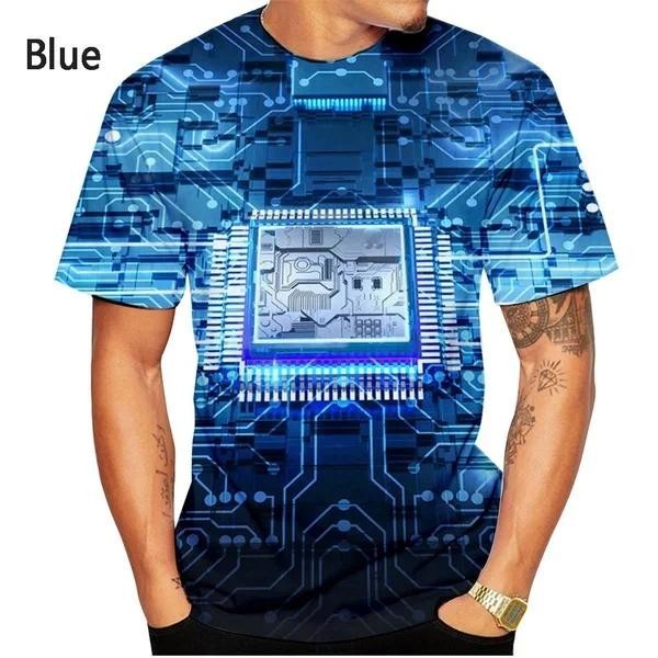 New Fashion Circuit Board 3D Printing T-Shirt Electronic Chip T-Shirt Men Ladies Summer Casual Short Sleeve Top