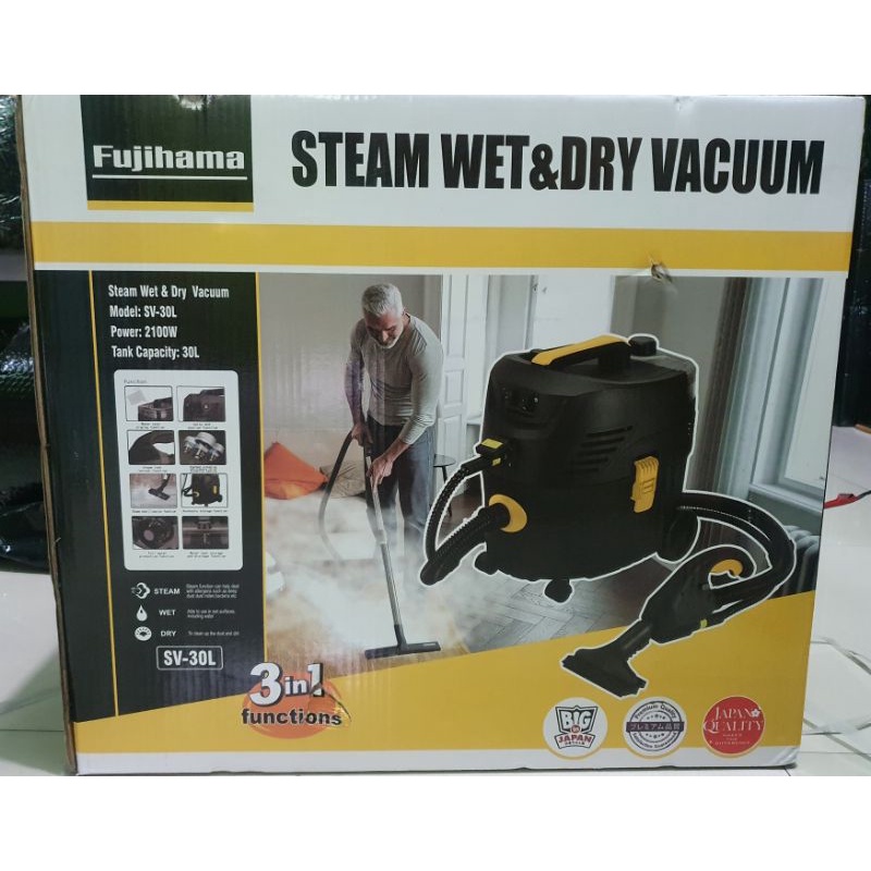 New Fujihama Steam Wet and Dry Vacuum Cleaner 30L 30 Liter Vacuum for Sofa Bed Car interior