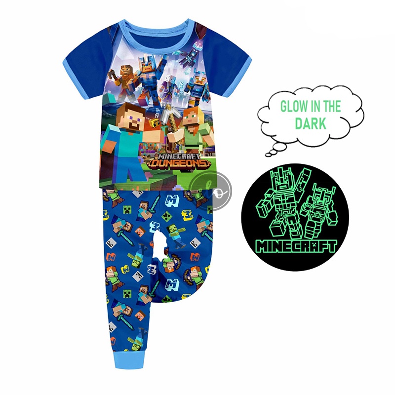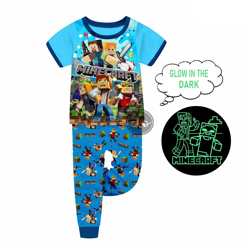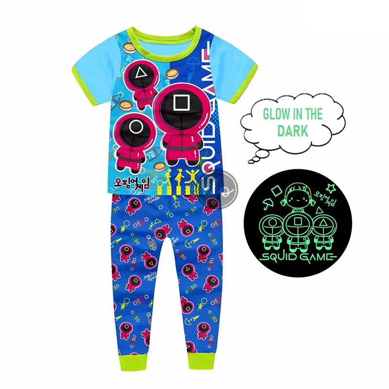 New GLOW in the DARK Pajama Set Minecraft Roblox Squid Game Shortsleeves Pajamas Set for Boys