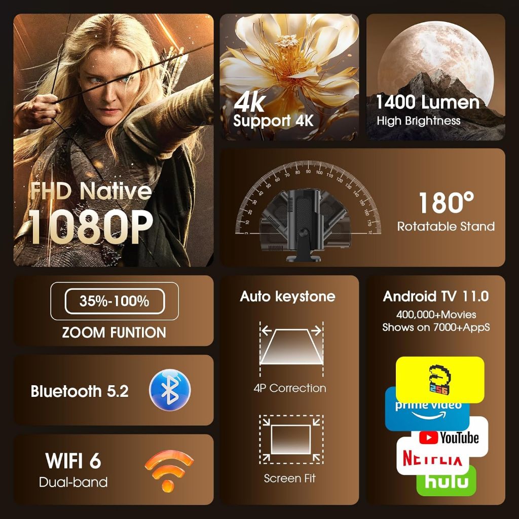 New HY320 Projector 4K Full HD 1080P Portable Projector Smart Projector For Phone & Bluetooth WIFI