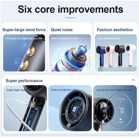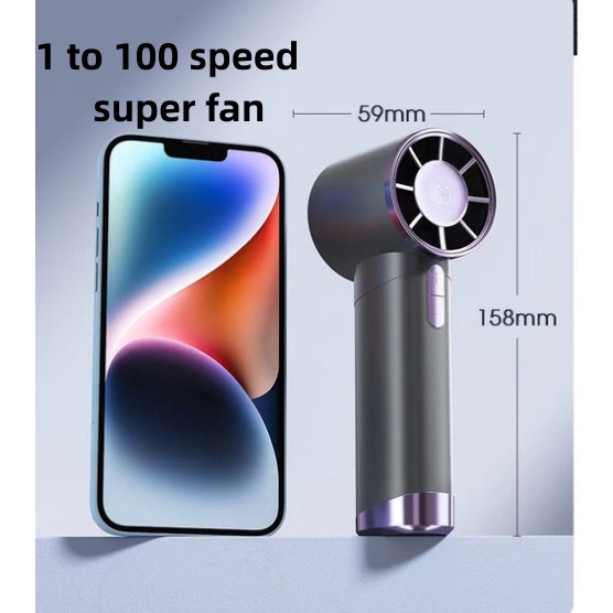 New Handheld Mini Fan High Speed Turbine Fan With 100 Gear Super Quiet Strong Rechargeable DS1013