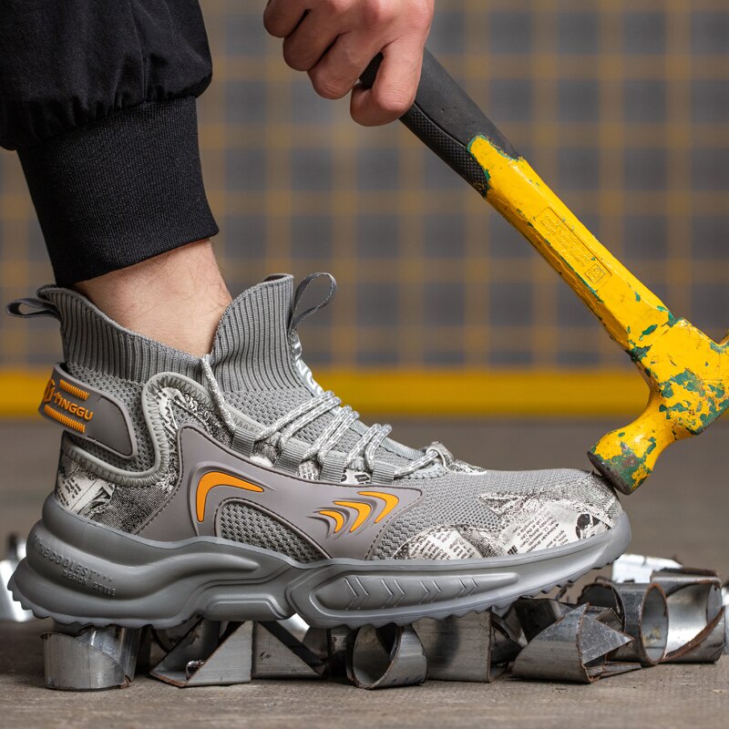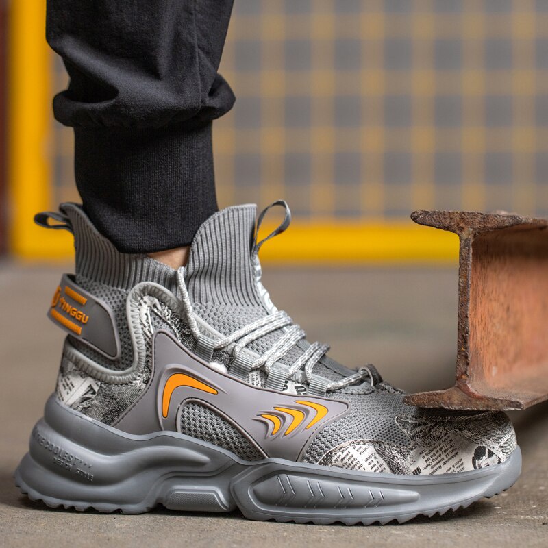 New High Top Fashion Safety Work Shoes Fashion Men Steel Toe Boots Protective Work Cap Anti Puncture