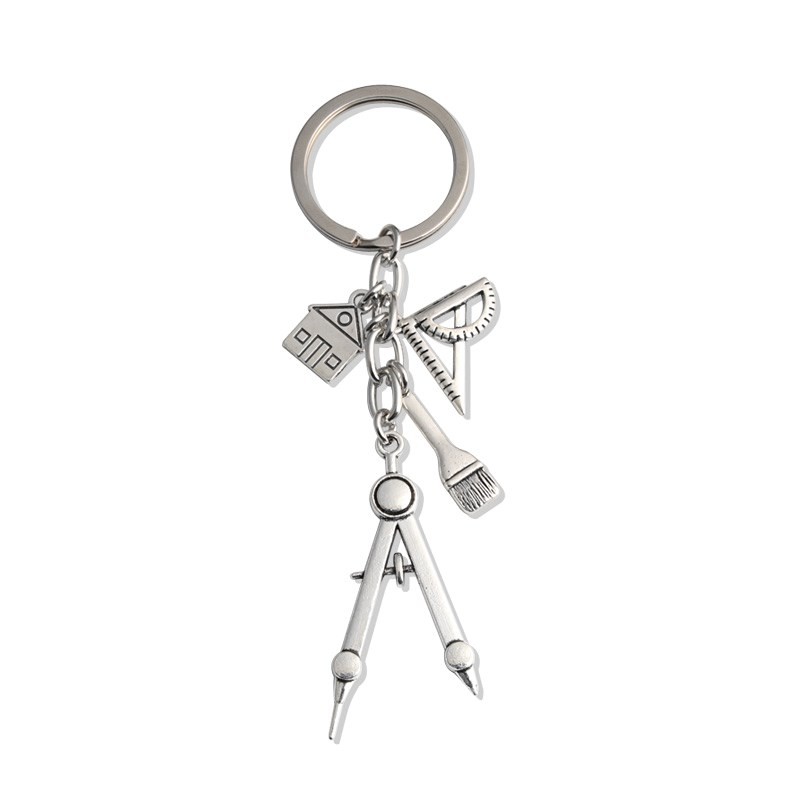 New Home Keychain Building Key Ring Triangular Rule Brush Conpass House Key Chain For Architect Engineer Drawing Jewelry