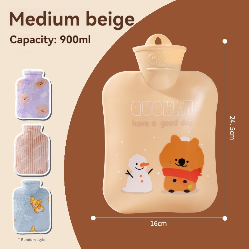New Hot Compress Bag with Plush Cloth Water Filling Bag Dysmenorrhea Stomach Warm Water Bag
