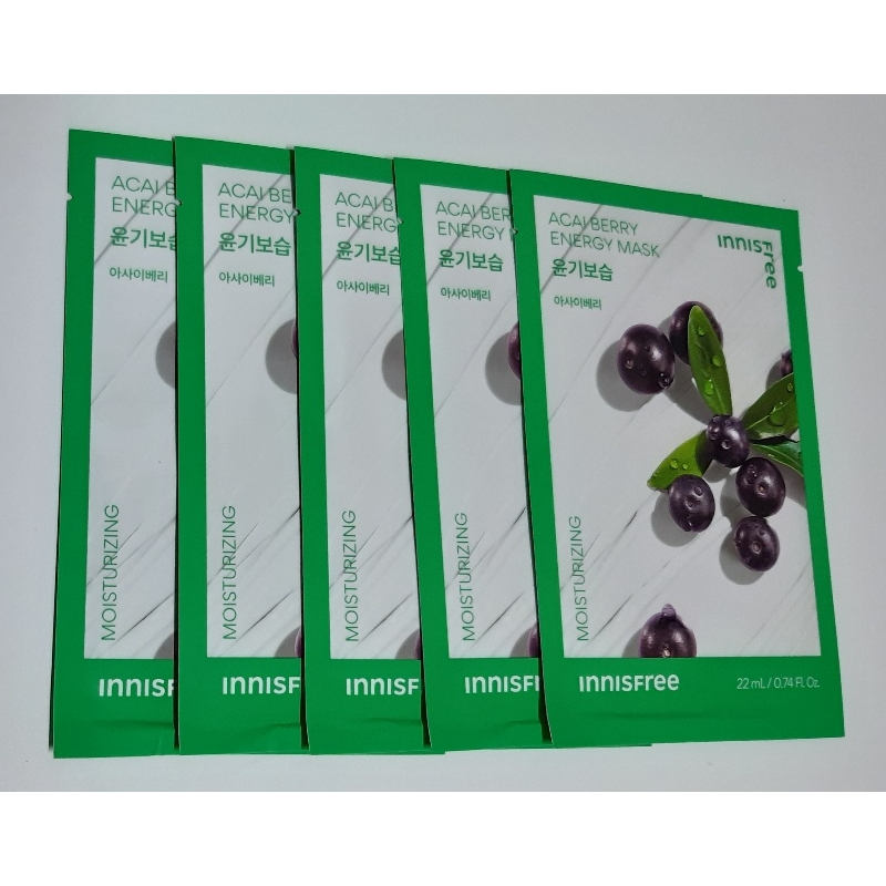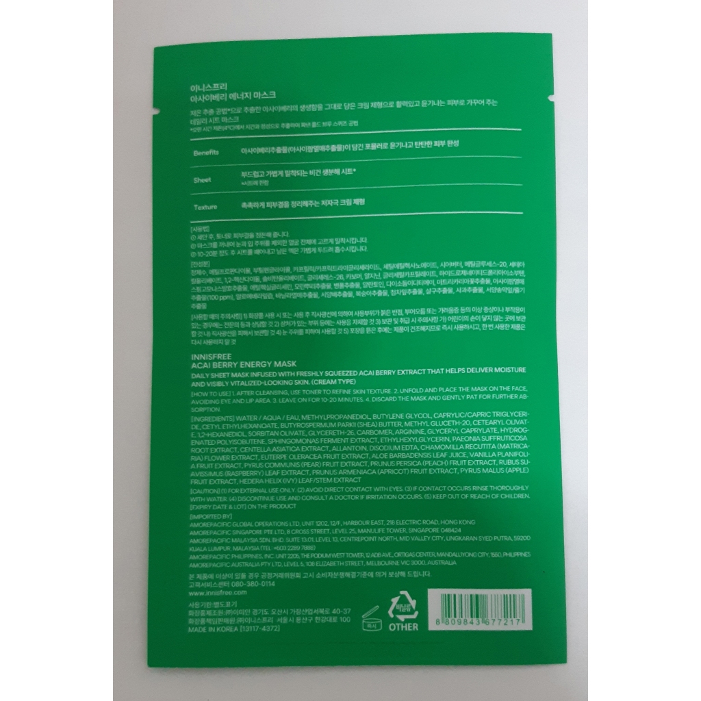 New[Innisfree] Energy Mask Sheet 22ml, ACAIBERRY, 1set (=total 5 Sheets), Choice for my beautiful skin