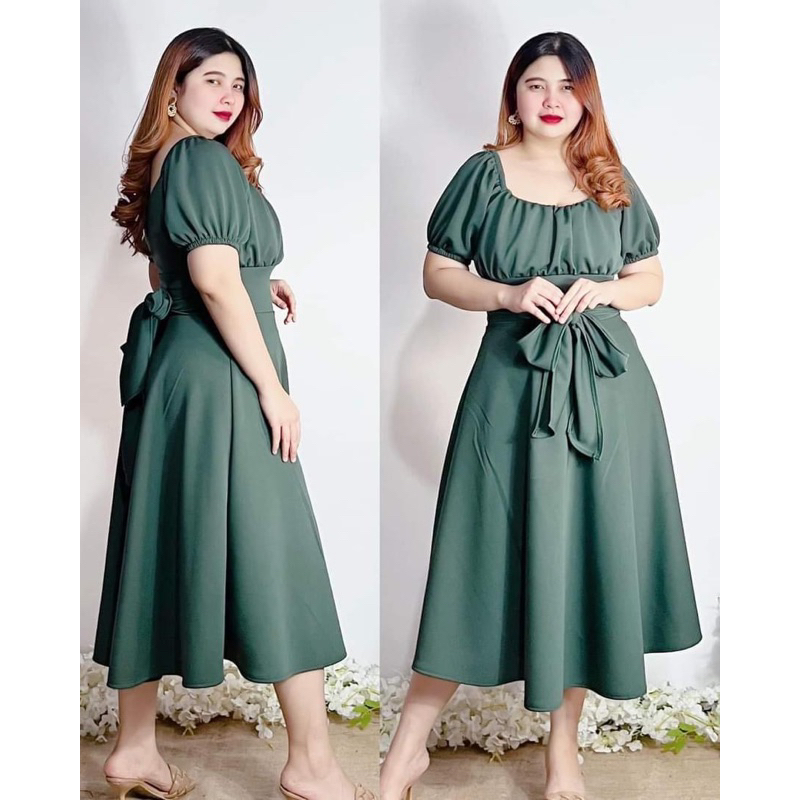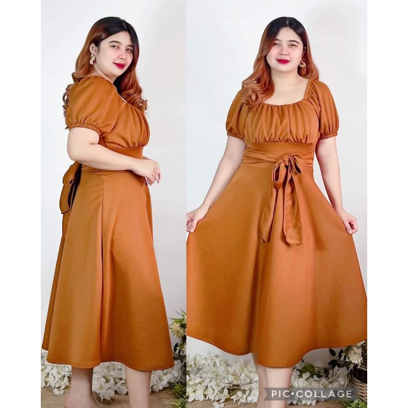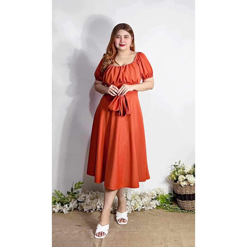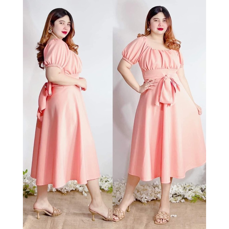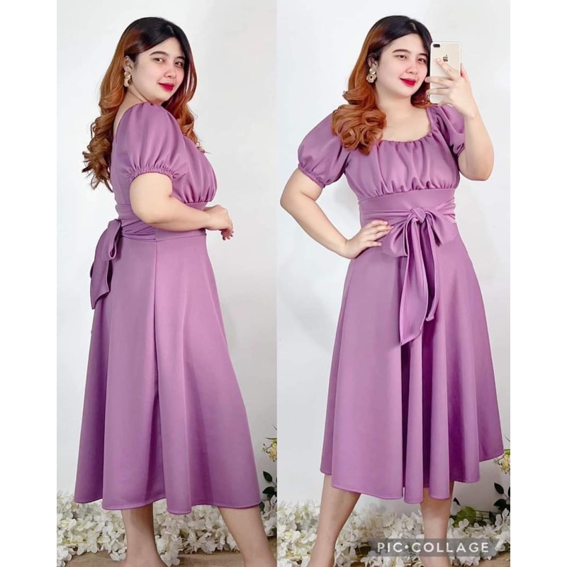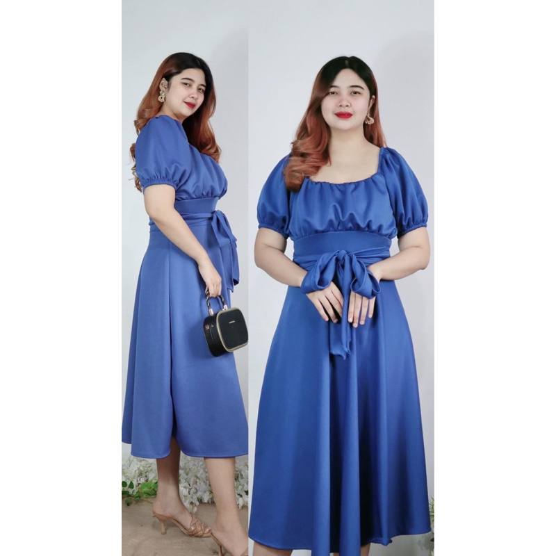 New Item! Classy Midi Dress with Tie Freesize