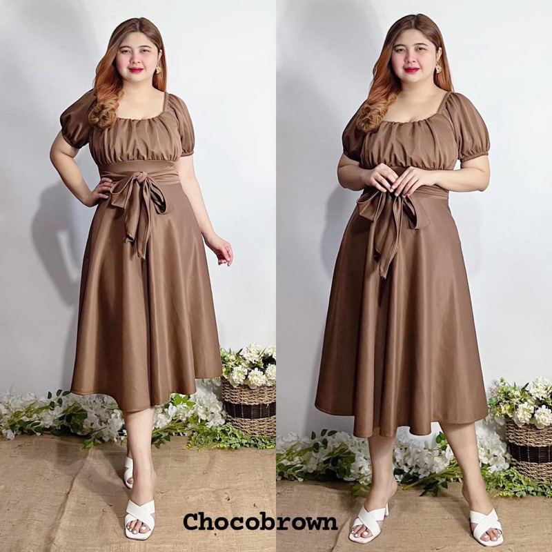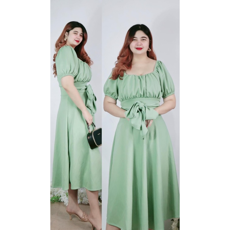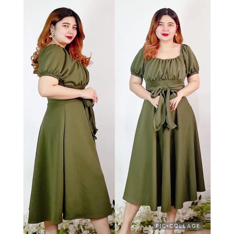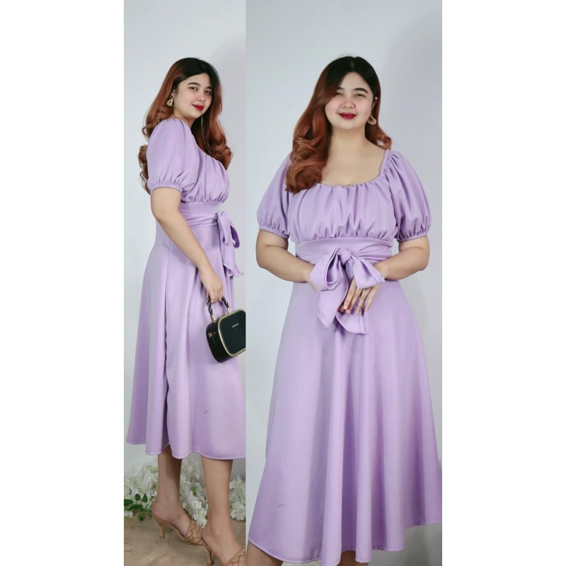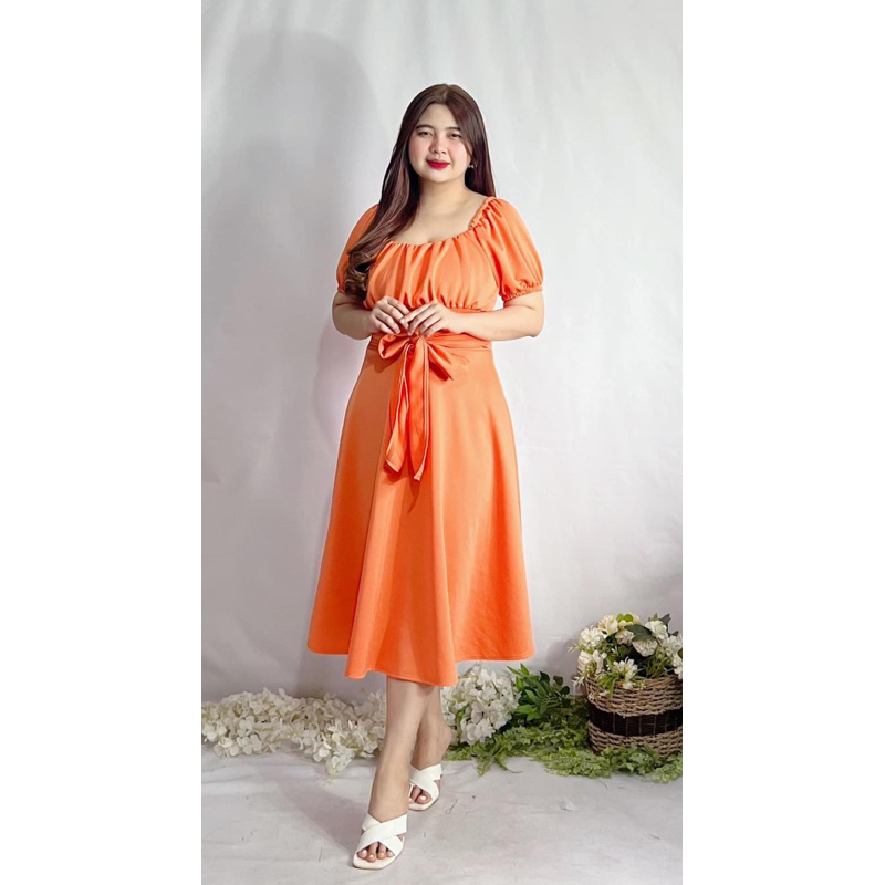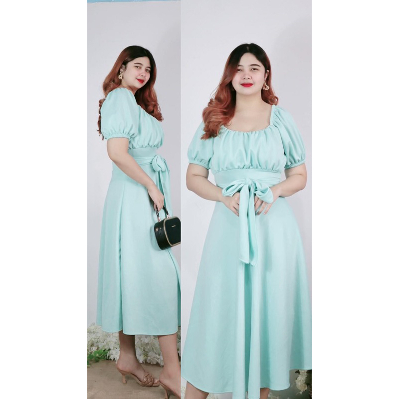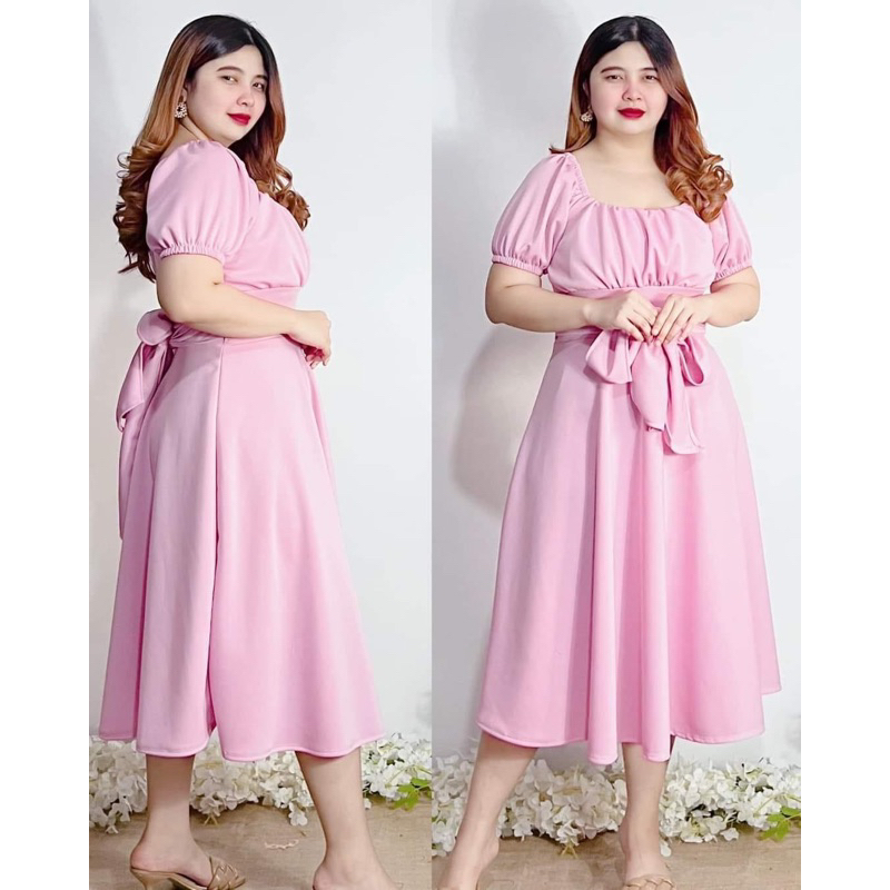 New Item! Classy Midi Dress with Tie Freesize