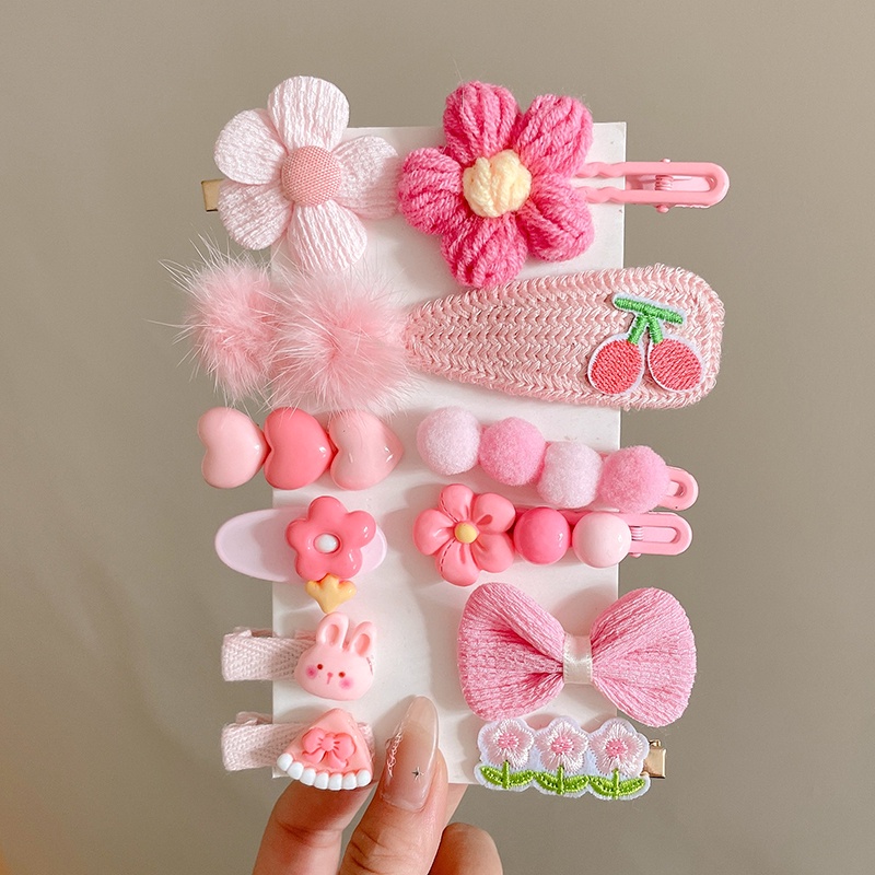 New Knitted Hair Clip Set Cute Kids Hair Clip Set Bangs Hairpin Flower Fruit Baby Girl Barrettes Hair Accessories