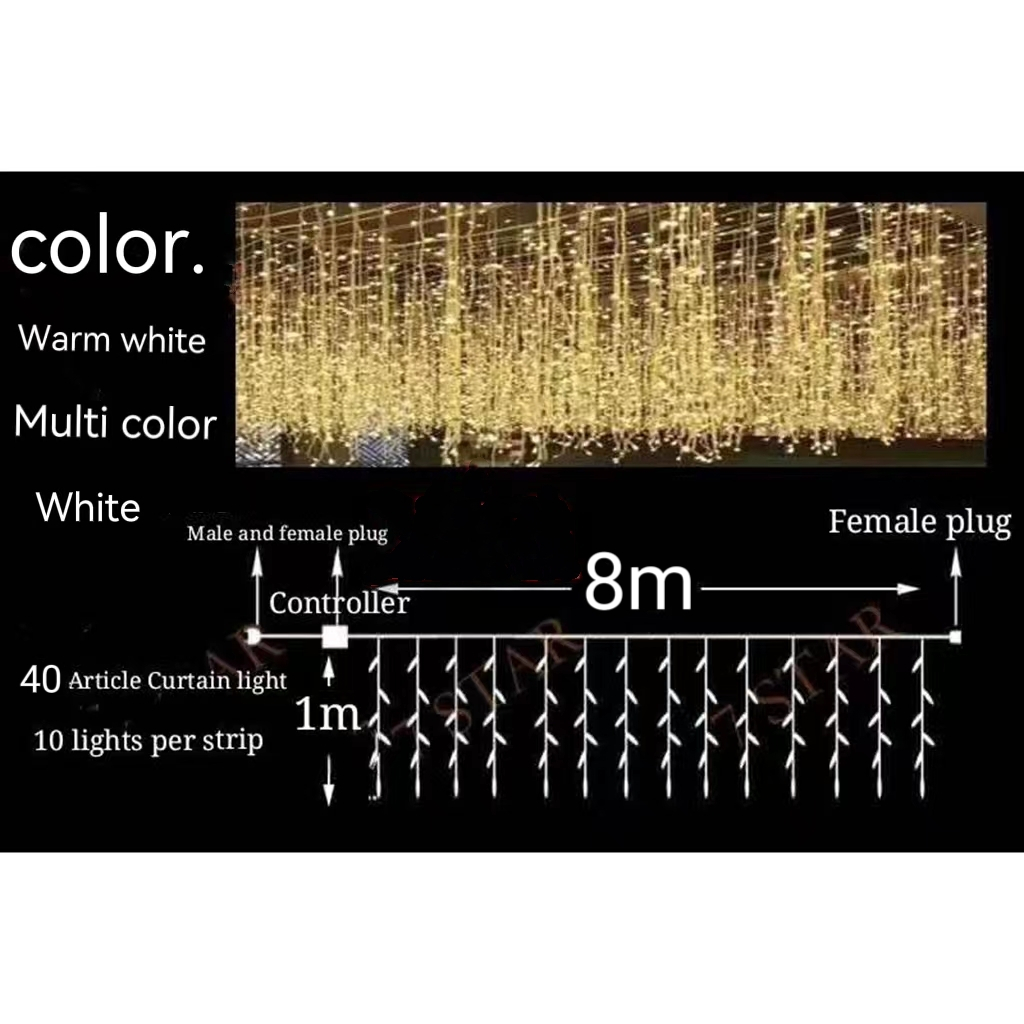New LED 200L Curtain Light Christmas Light 4m*1m/ 400L Curtain Light Christmas Light 8m*1m mraxi