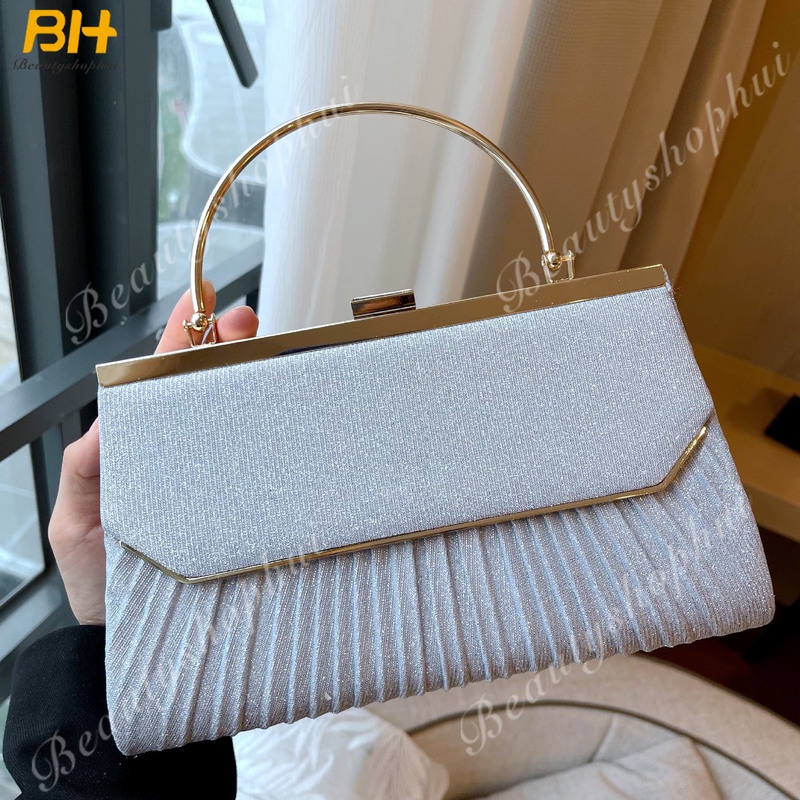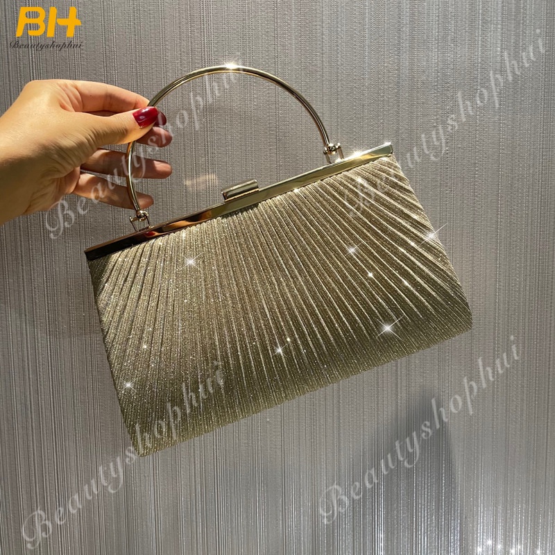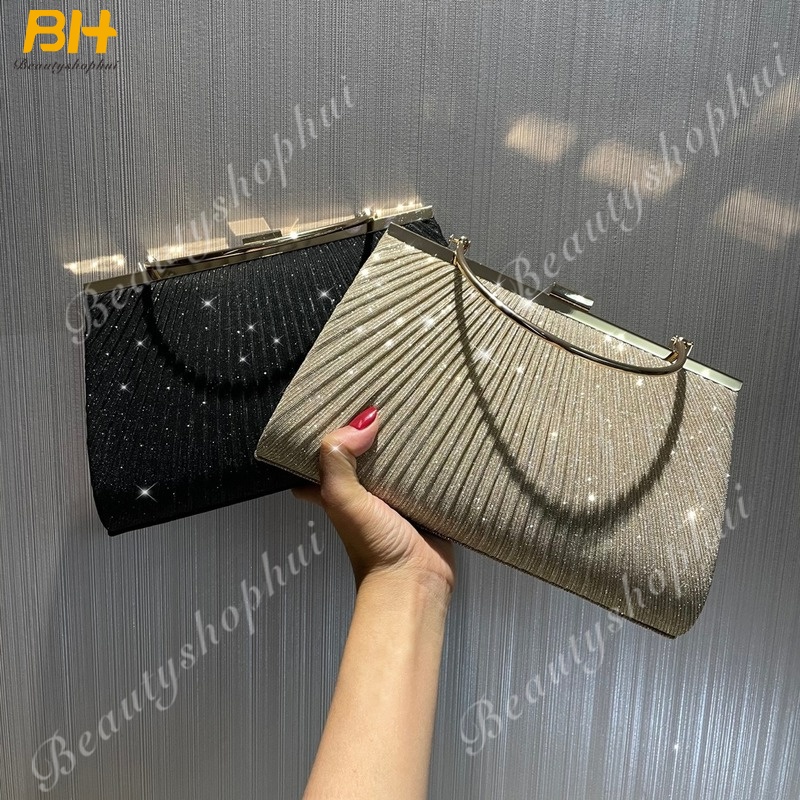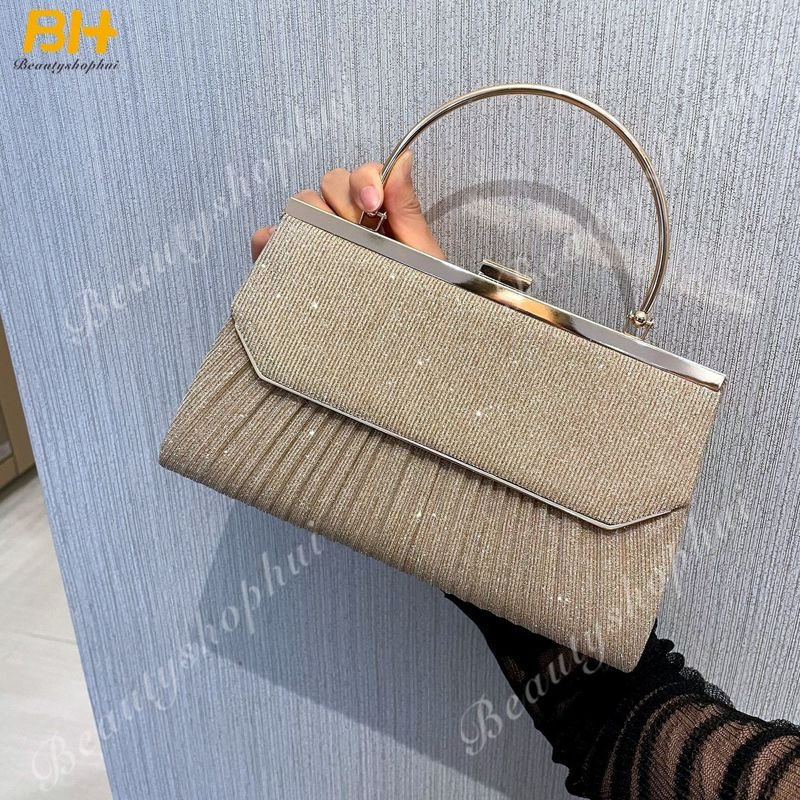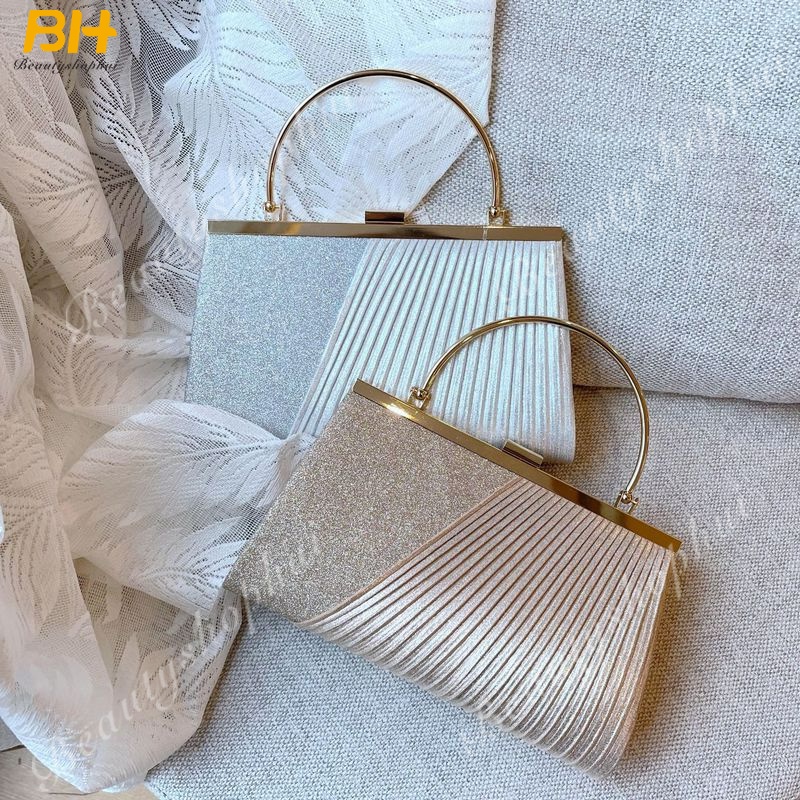 New Luxury Pleated Shiny Dinner Bag Women's Fashion Banquet Garment Evening Bags