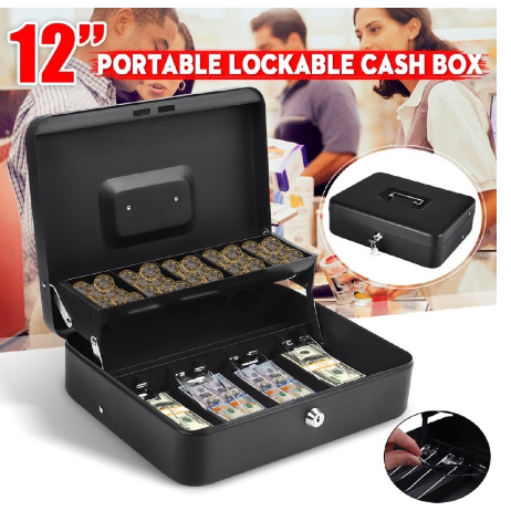 New Metal Cash box Drawer Cashier Safety box Lock Big Size Secure you Money with key