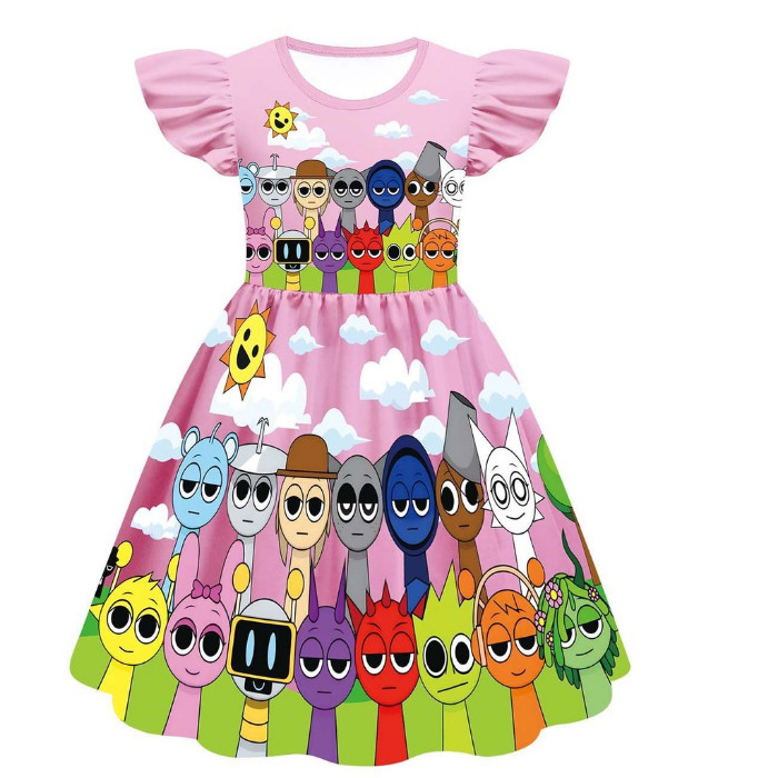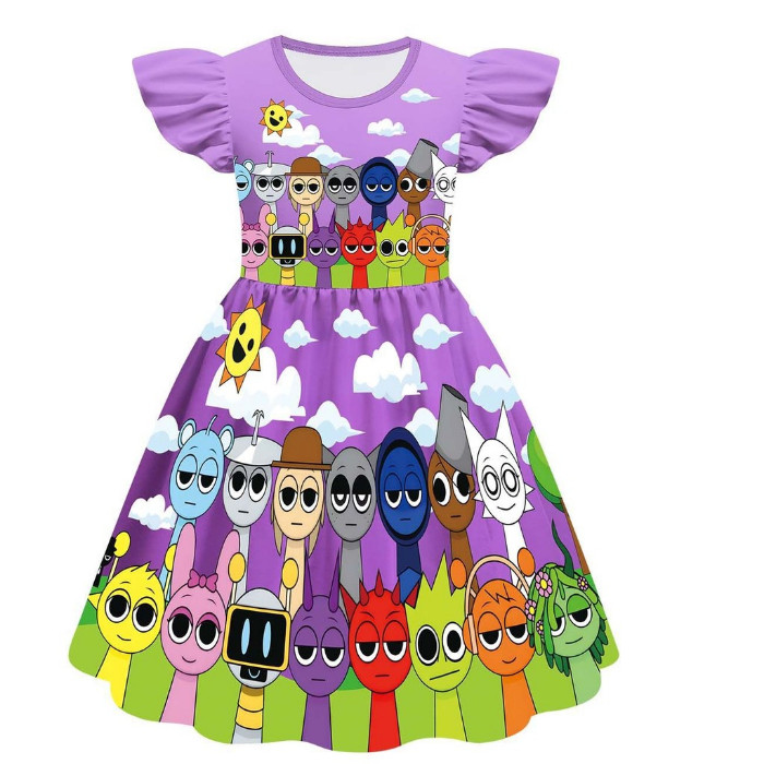 New Movie Sprunki Dress for Baby Girl Game Lncredible Box Princess Dress 2-10 Years Old Birthday Birthday Themed Party Dresses Girls Sprunki Cosplay Costume