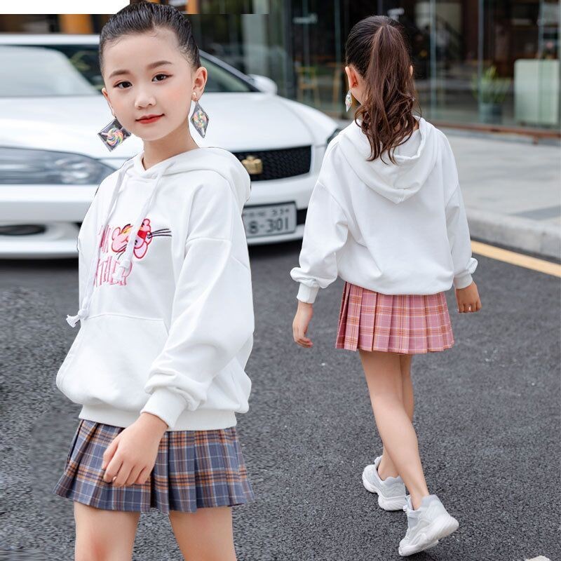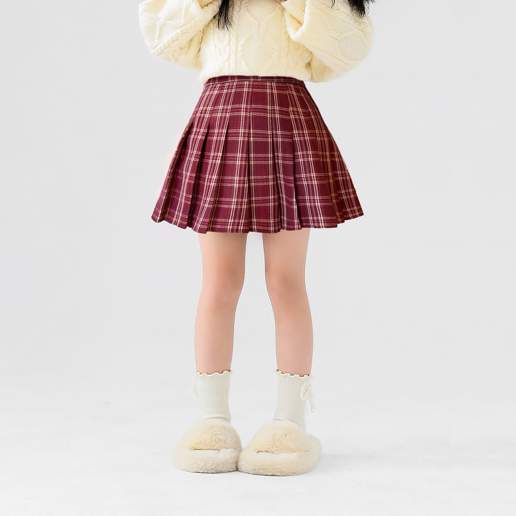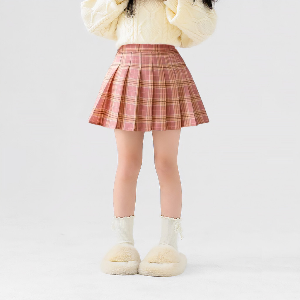 New Pattern Fashion College Style for Girls Summer Sweet Lattice Skirt High WaistPleated Skirt Children's Short Skirt Performance Costume for 4-10 Yrs