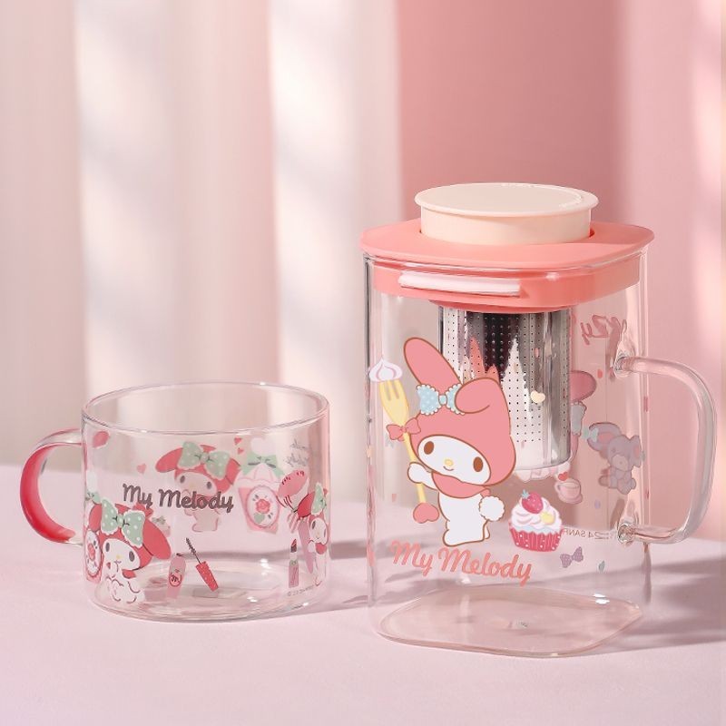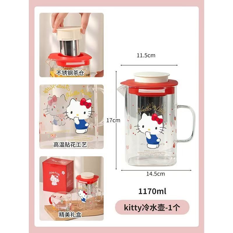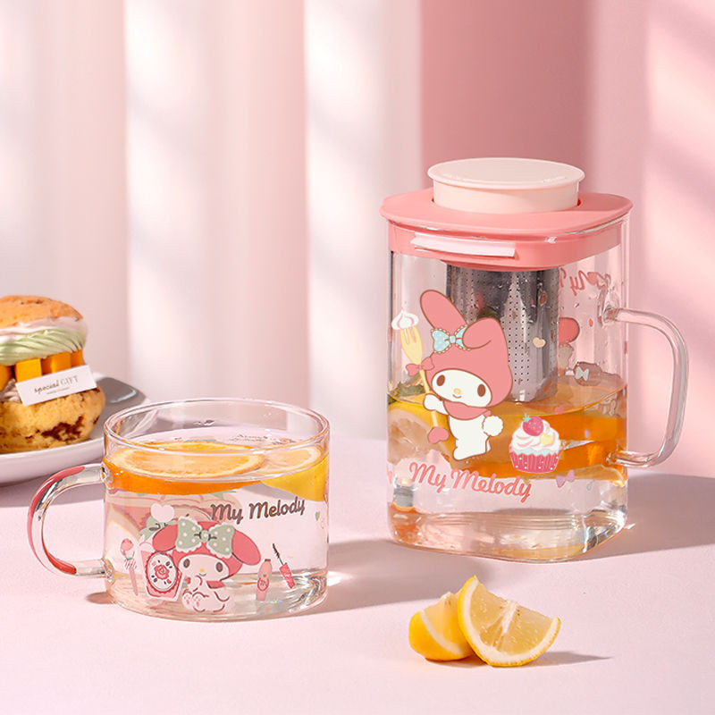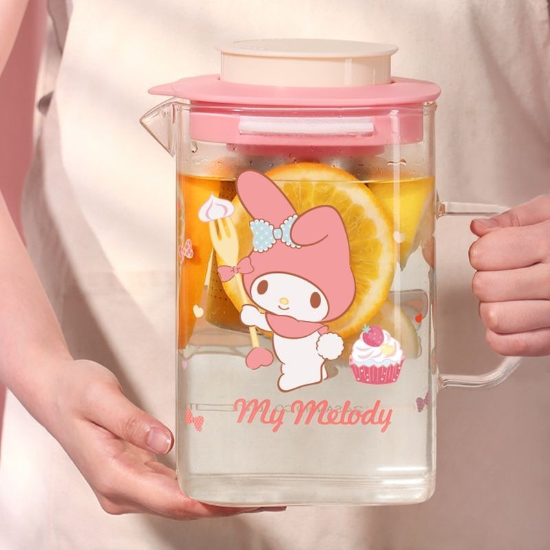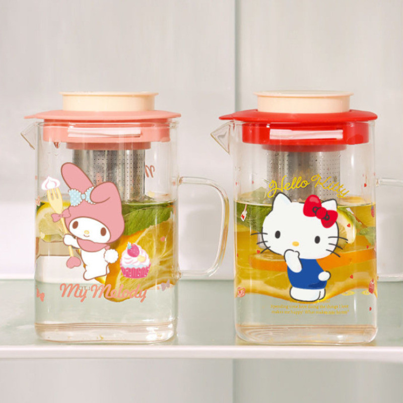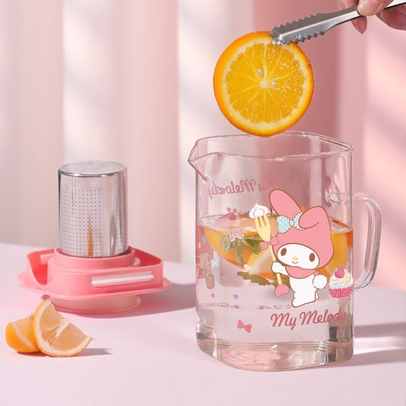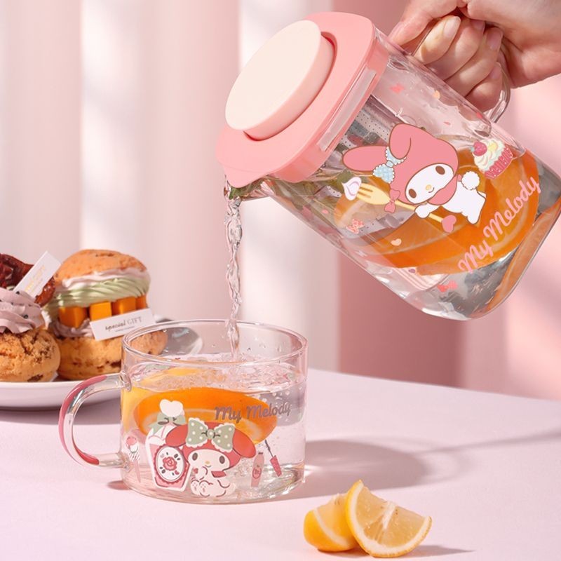New Pattern Sanrio Co Branded Styles Melody Hello Kitty Cartoon Print Glass Water Kettle Stainless Steel Tea Chamber High-capacity Home Teapot and Cooling Cup Set