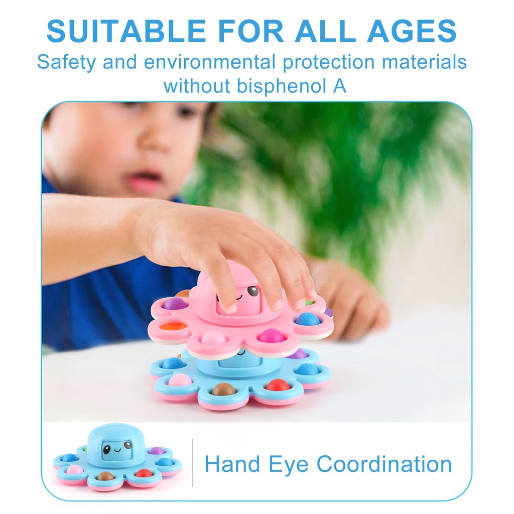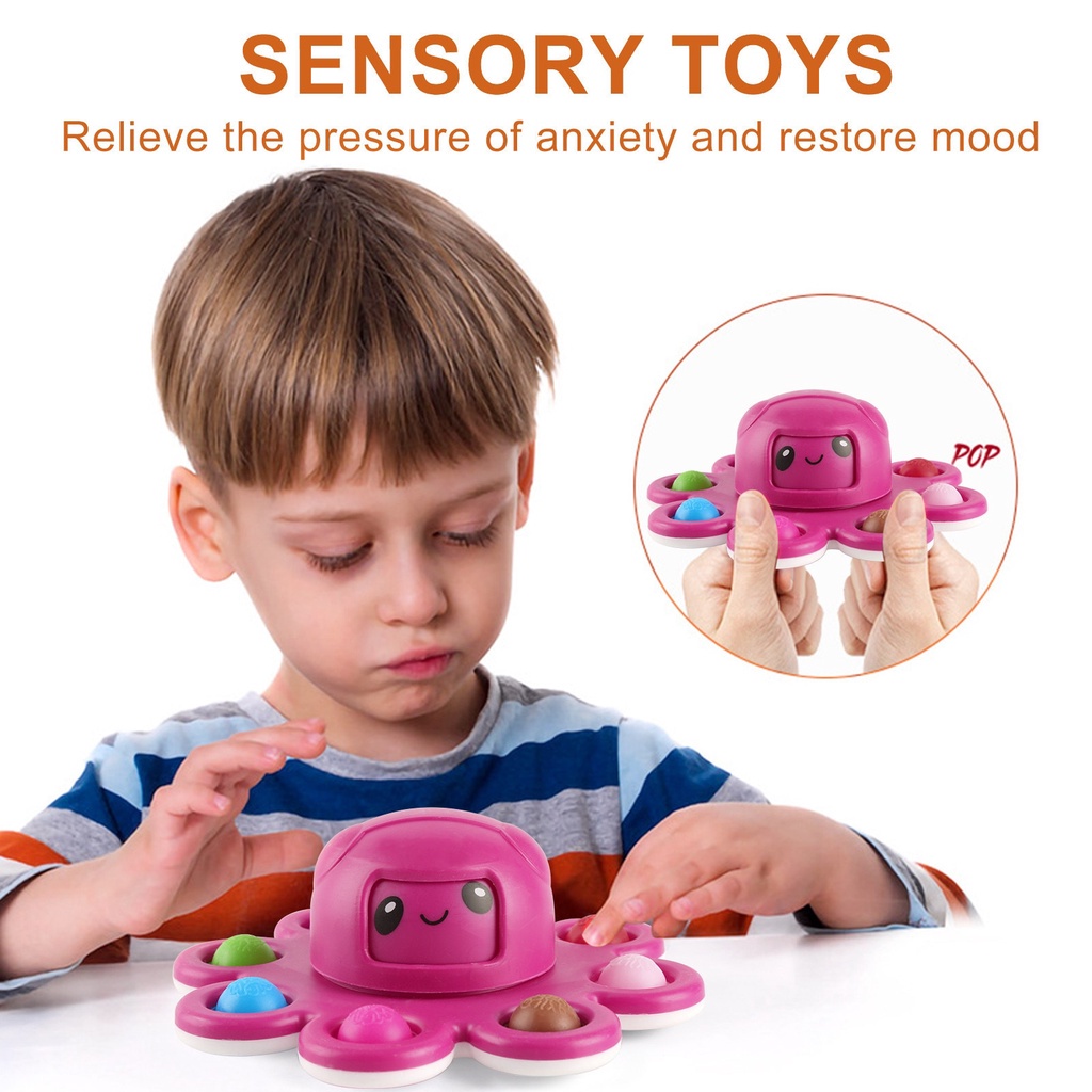 New Pop It Stress Relief Silicone Interactive Flip Octopus Change Faces Spinner Push Pops Bubble Spinner Fidget Toys