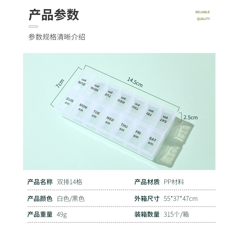 New Portable Compact Transparent One Week 7 days pill box Morning Evening Medicine Double Row 14 Compartments Pill Box with Blind Profile Packing Storage small pill box