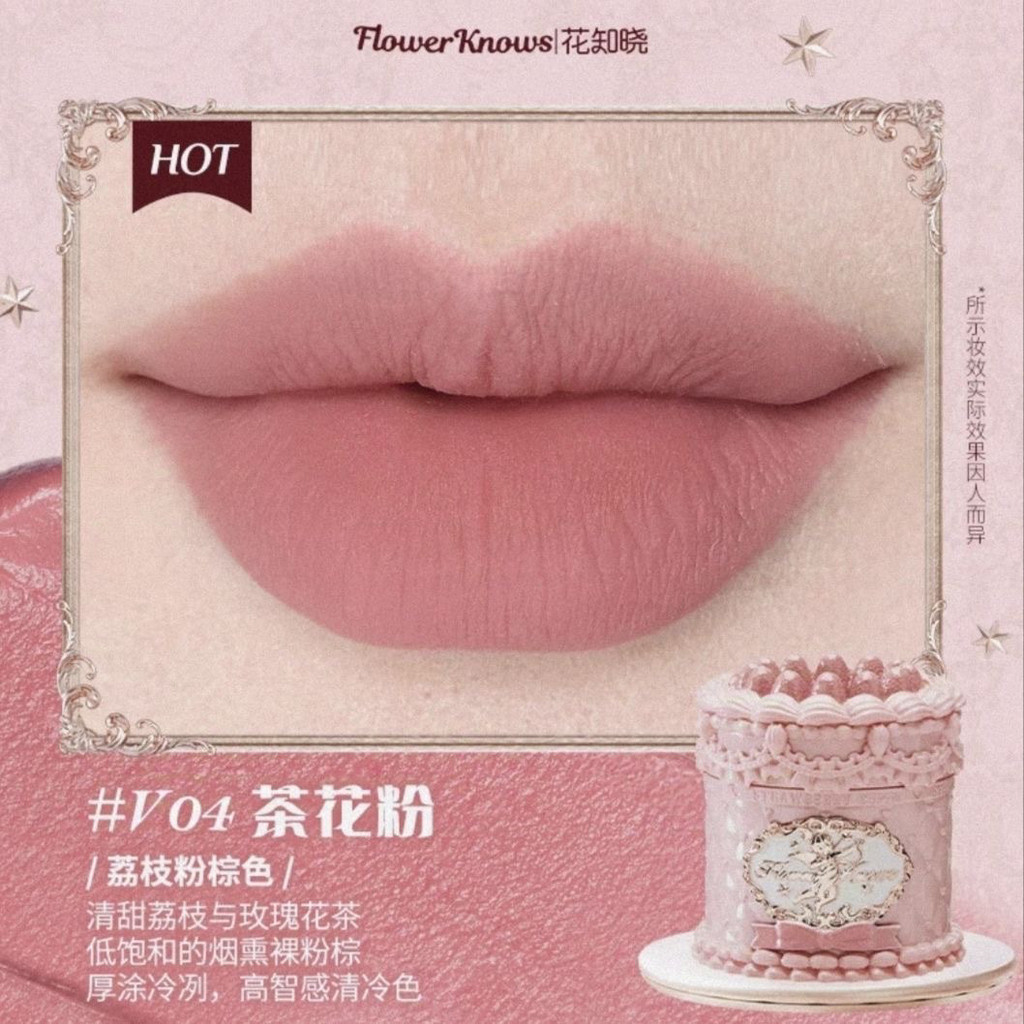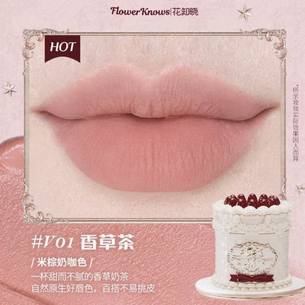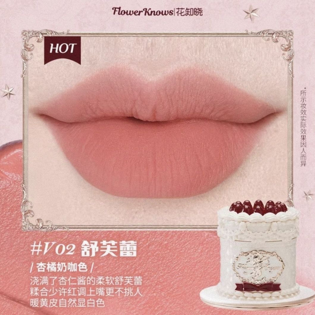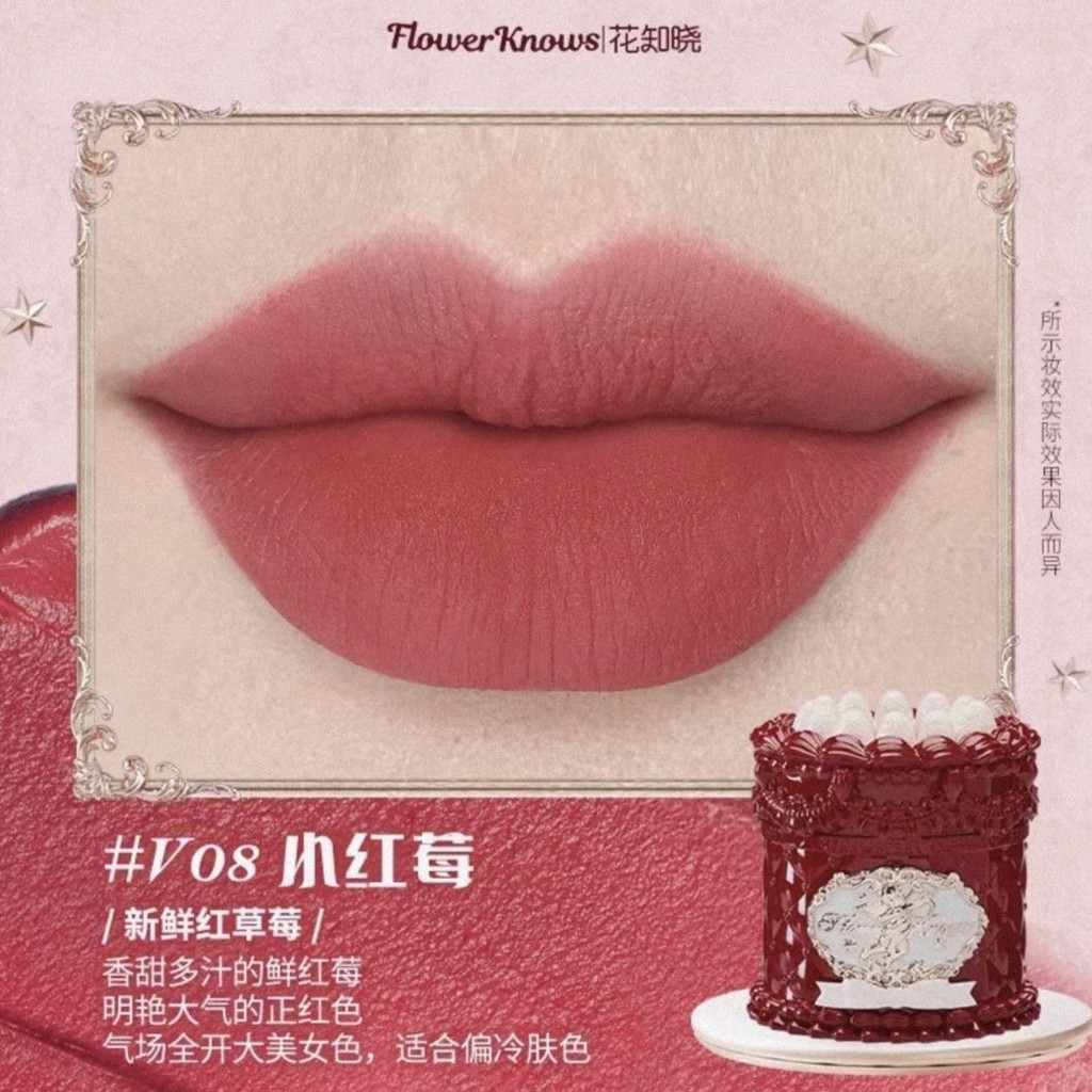 New Presale Flower Knows Strawberry Cupid Cake Lip Mud Matte Finish Velvet White Hot Light Luxury Girly Style