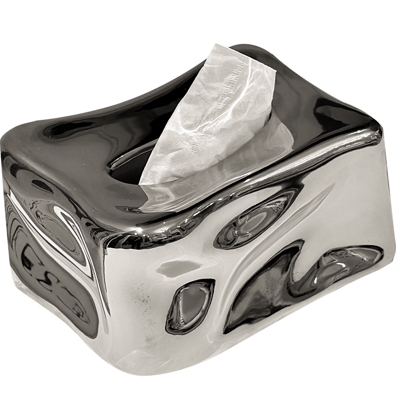 New Product Creative Silver Tissue Box Tissue Storage Box Living Room High-End Light Luxury Influencer Household Tissue Box Napkin
