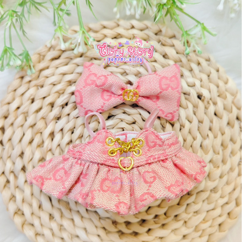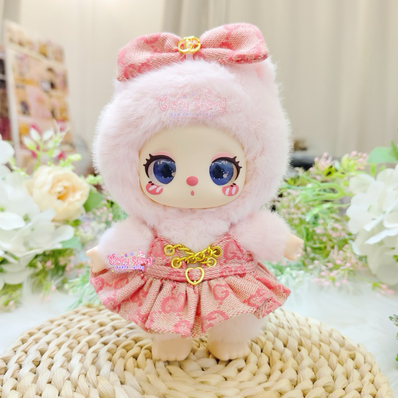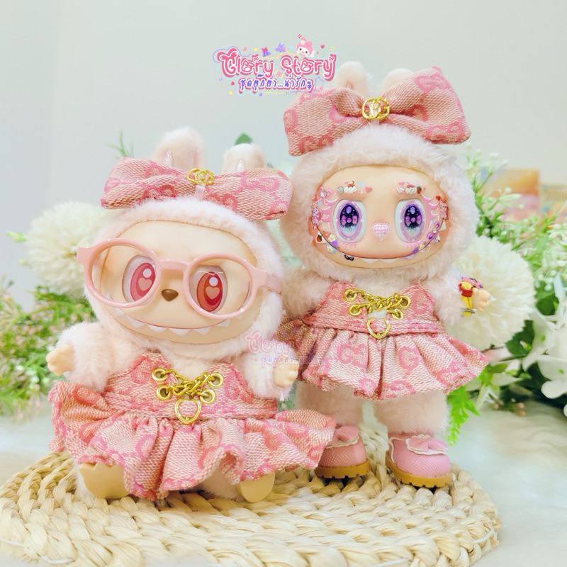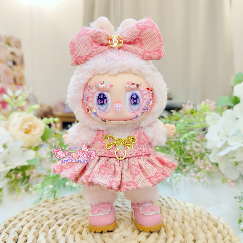 New Products Pink Spaghetti Strap Dress Set Heart Belt Labubu v1 v2