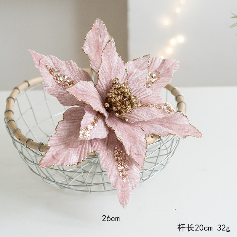 New Product Pink Champagne Color Golden Christmas Flower 26cm Flannel Christmas Flower Handmade Sticky Pink Christmas Simulation Flower Christmas Decorations