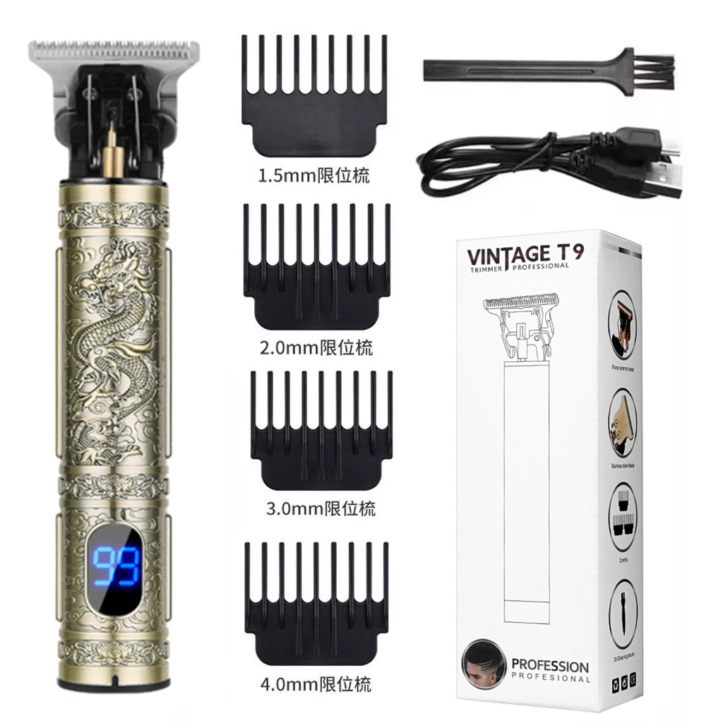 New Product T9 Electric Fader Shaver Bald Hair Clipper Retro Oil Head Engraving Digital Display Power Generation Machine for Men