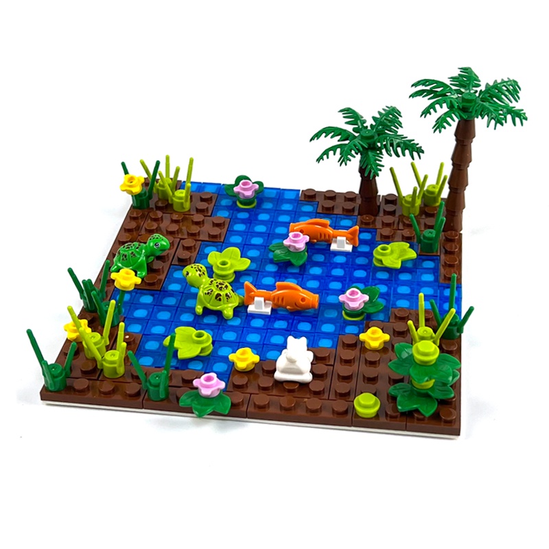 New Scene Animal Farm MOC Building Blocks Pool side Fish Cat Tortoise Wetland Panda Bamboo Aquarium Birds Penguin DIY Toy