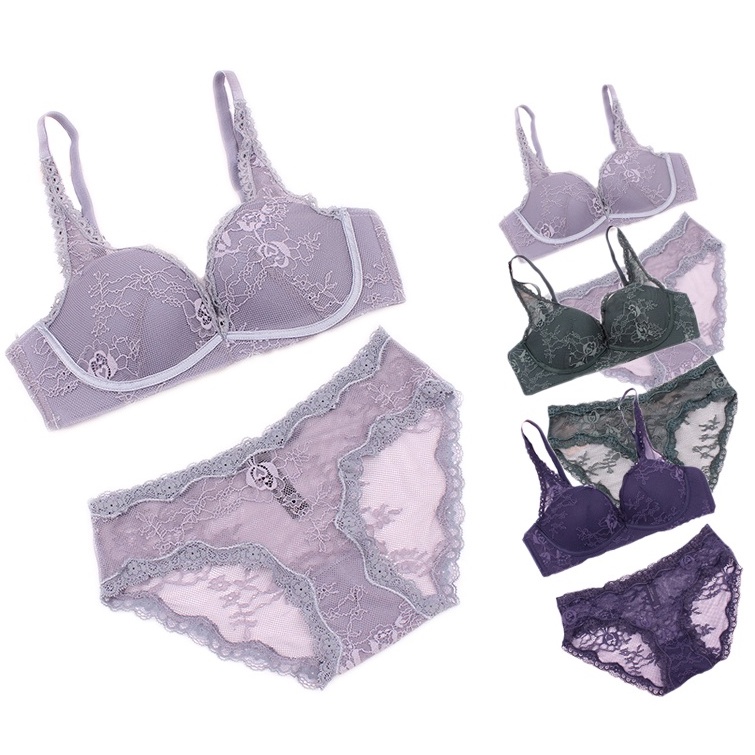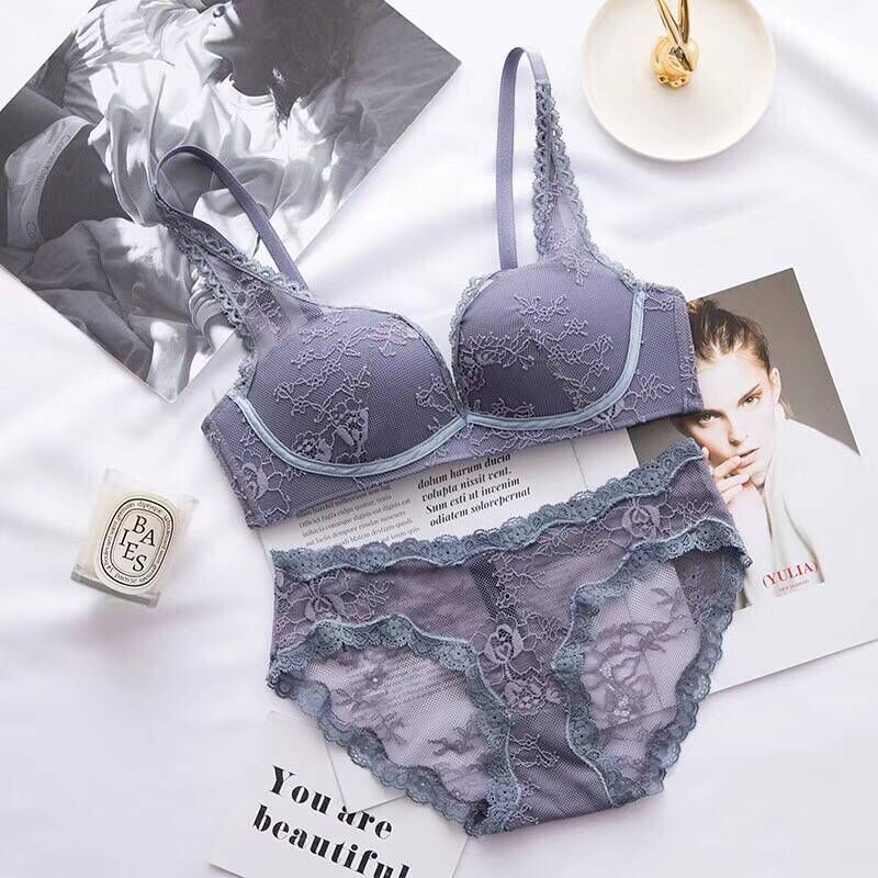 New Sexy Lace Non wire Bras Panties set wireless Bra panty Terno quality Underwear