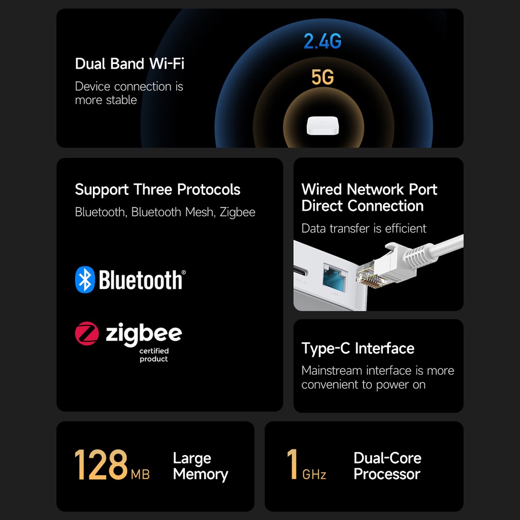 New Smart Multimode Gateway 2 Support 3 Protocols Bluetooth,Bluetooth Mesh,Zigbee 128MB Large Memory Smart Home Hub