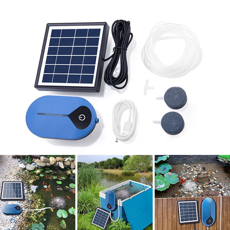 New Solar Powered Oxygenator Water Oxygen Pump Pond Aerator Aquarium Air Pump 2 Air Stone Airpump