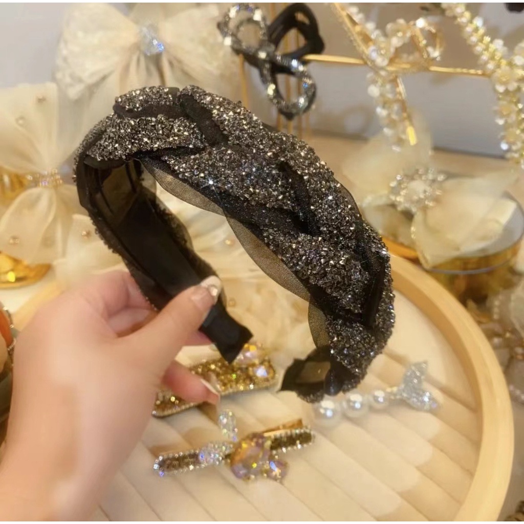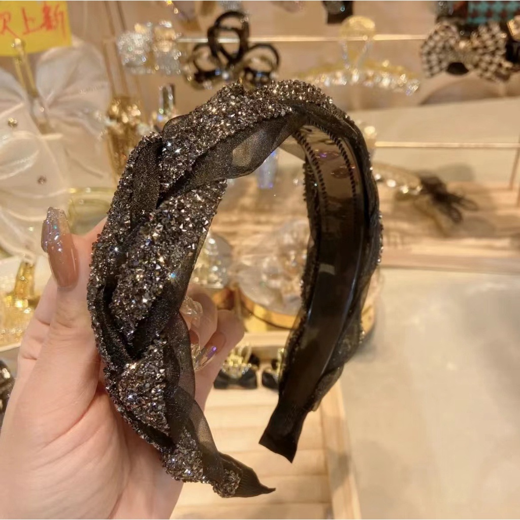 New Style Anti-Slip Toothed Headband Twist Braid Headband Female High-End Rhinestone Pressed Hair All-