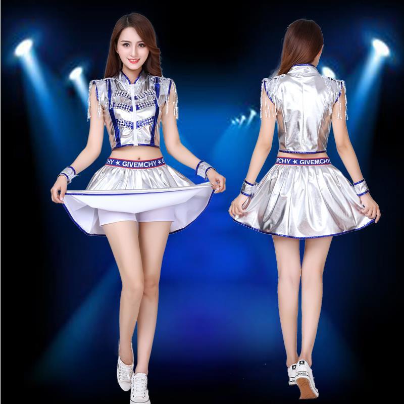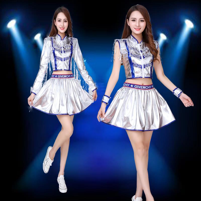 New Style Jazz Dance Costume Female Adult Cheerleading Cheerleader DS Performance Costume Modern Dance Sequin Square Dance Costume