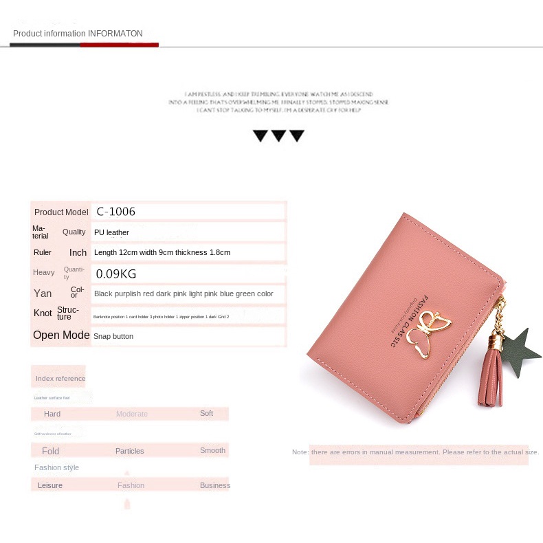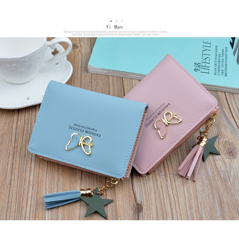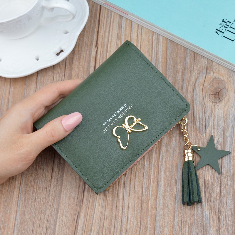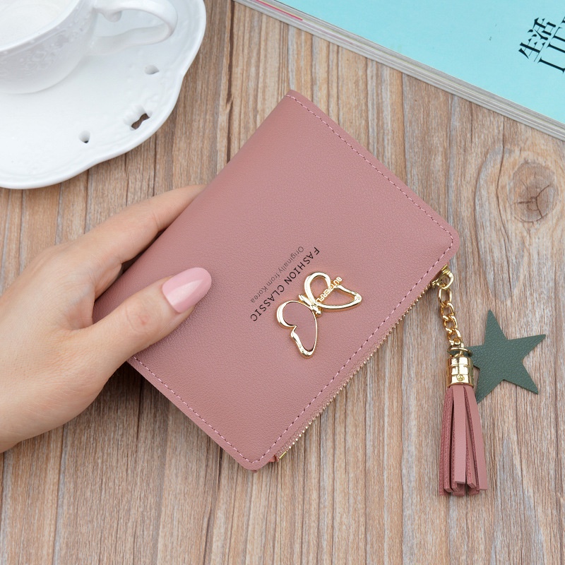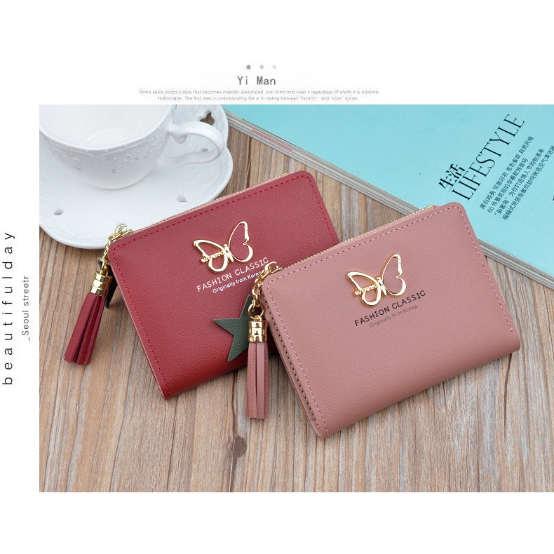 New Style Ladies Wallet Women Short Butterfly Tassel Zipper Cute Coin Purse Student Small Clutch Bag Girl