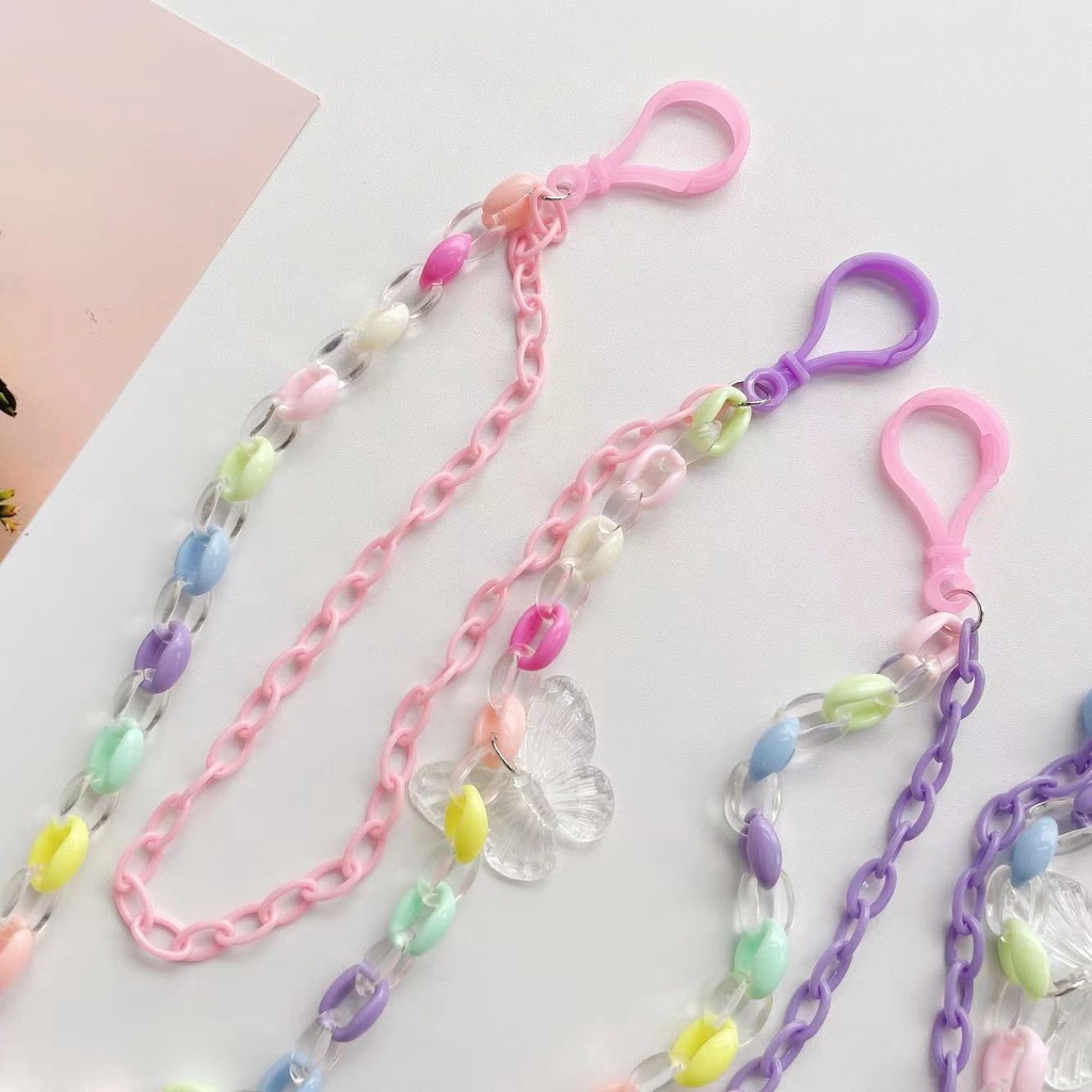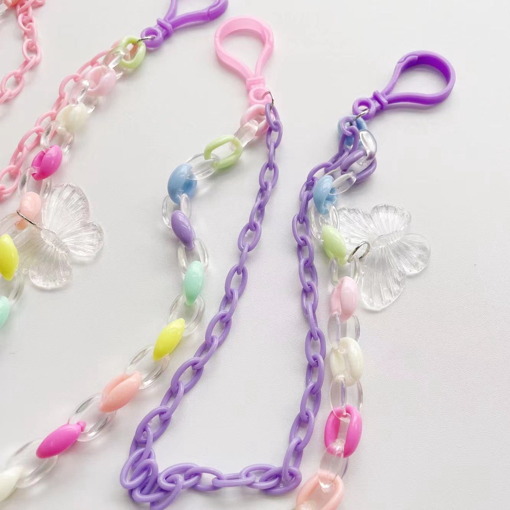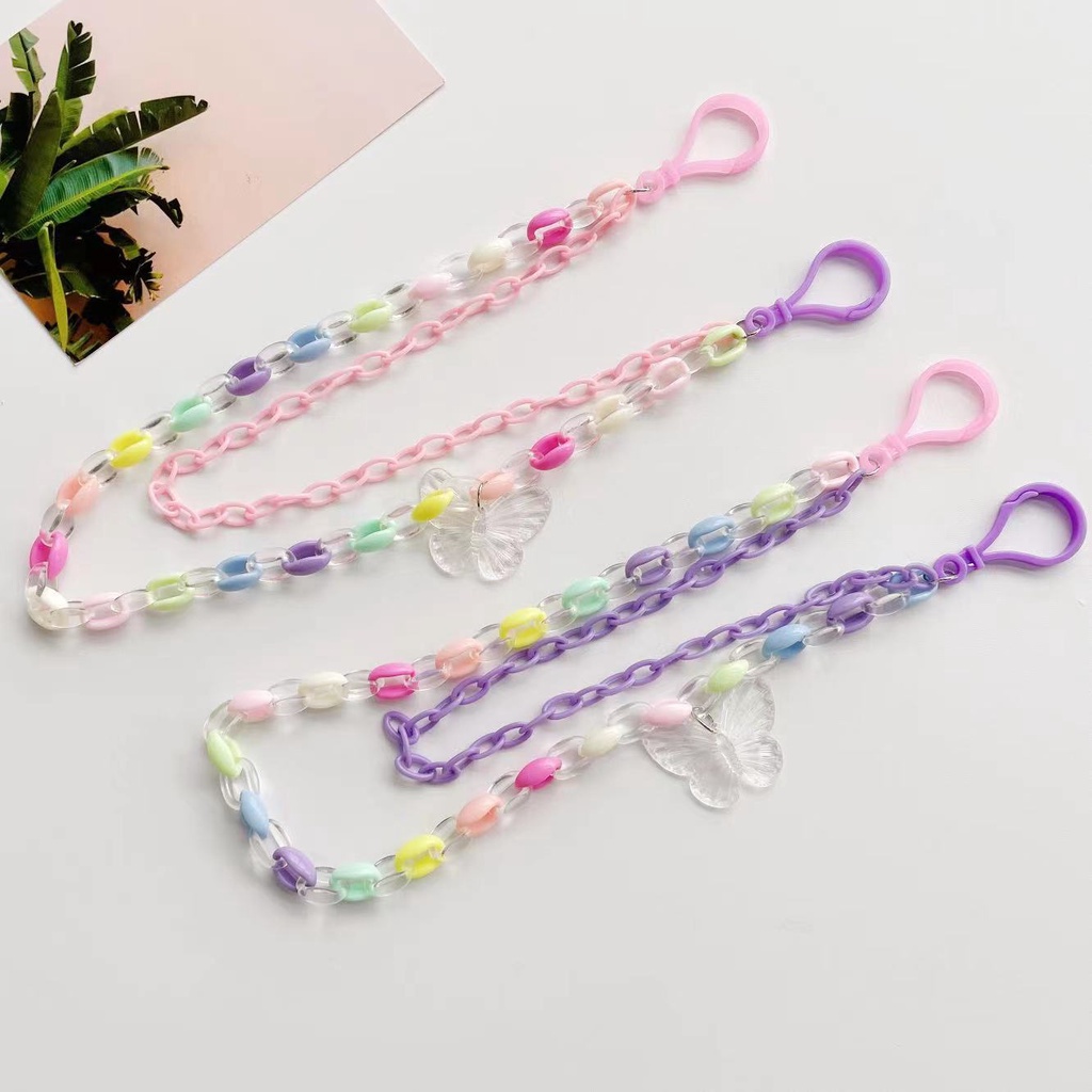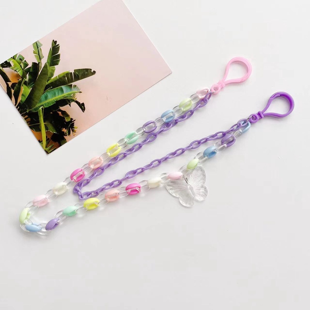 New Style Simple Cartoon Transparent Butterfly Pendant Candy Color Acrylic Belt Hanging Chain Double Layer