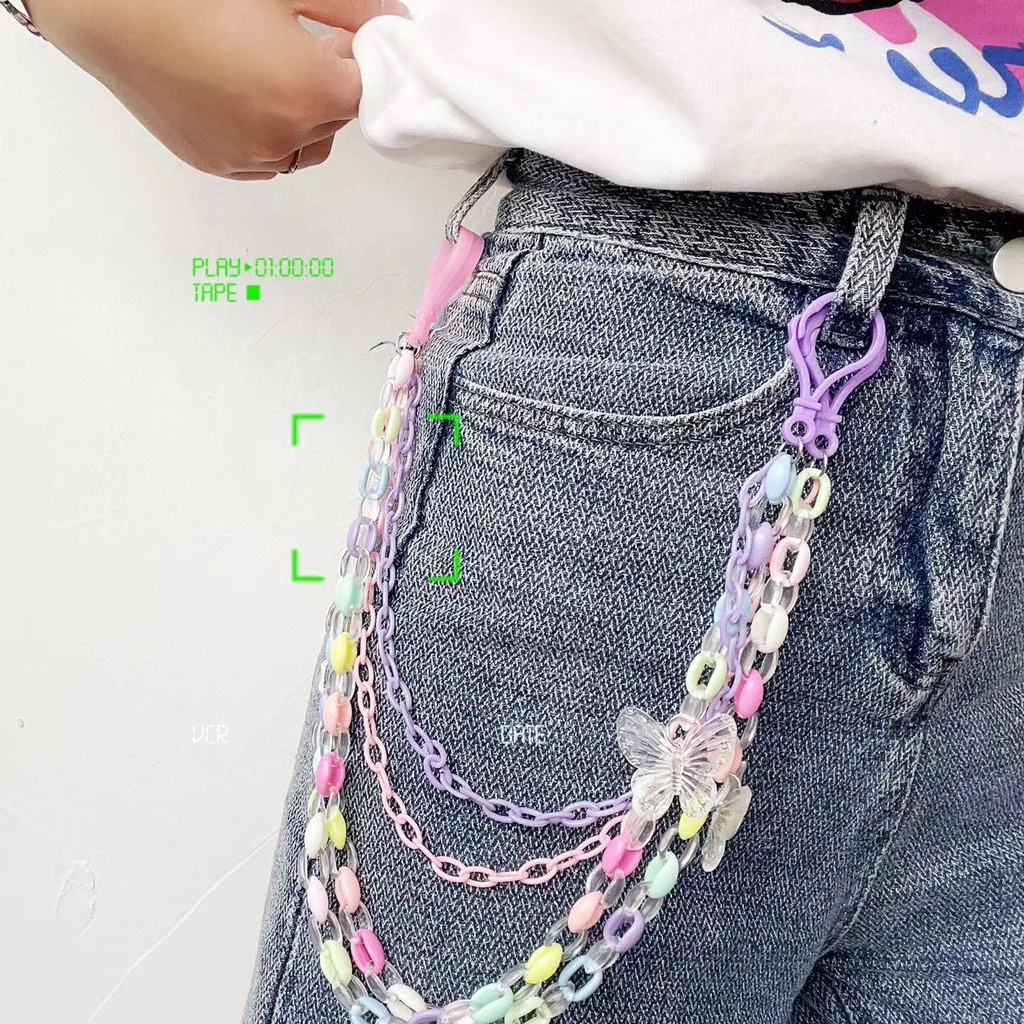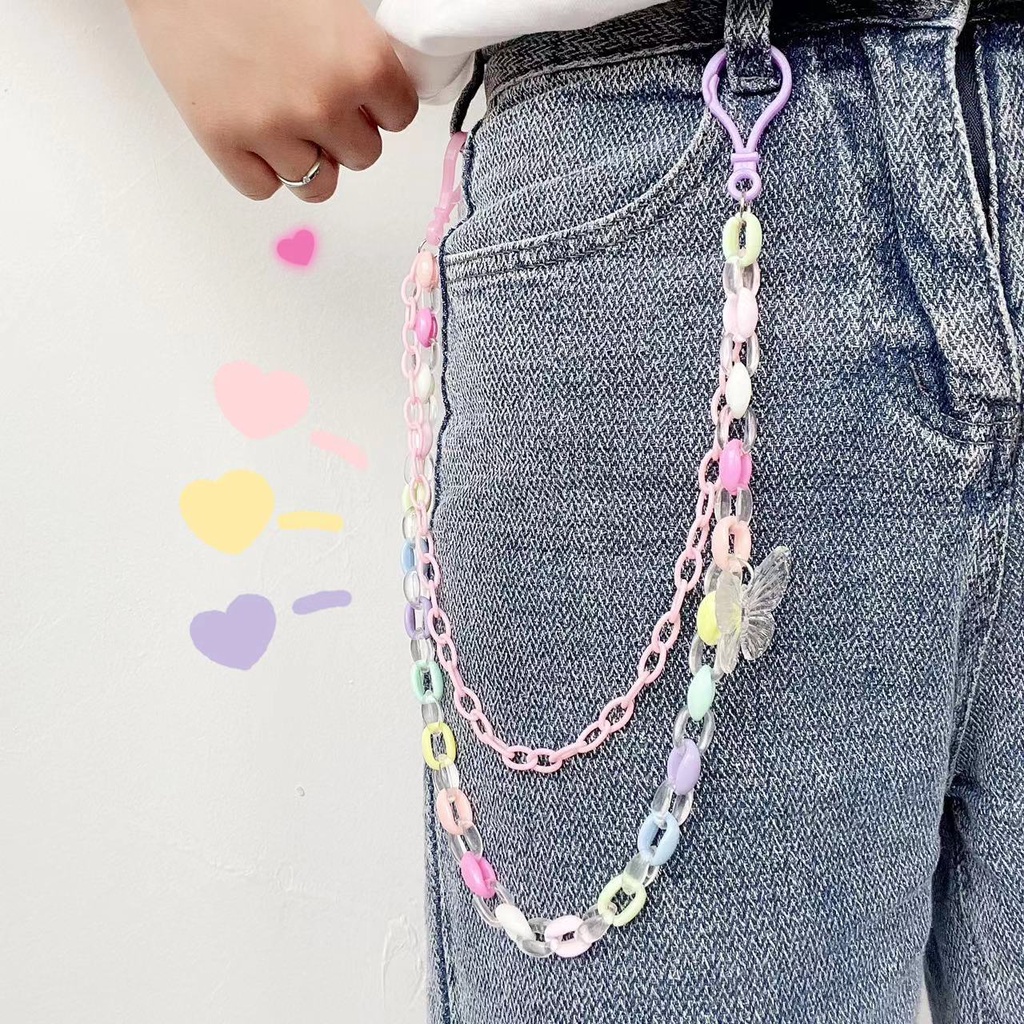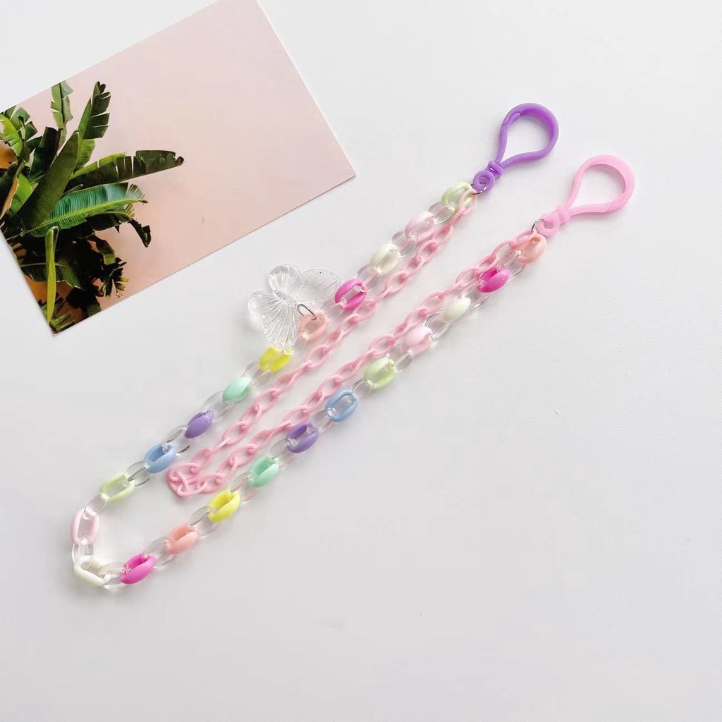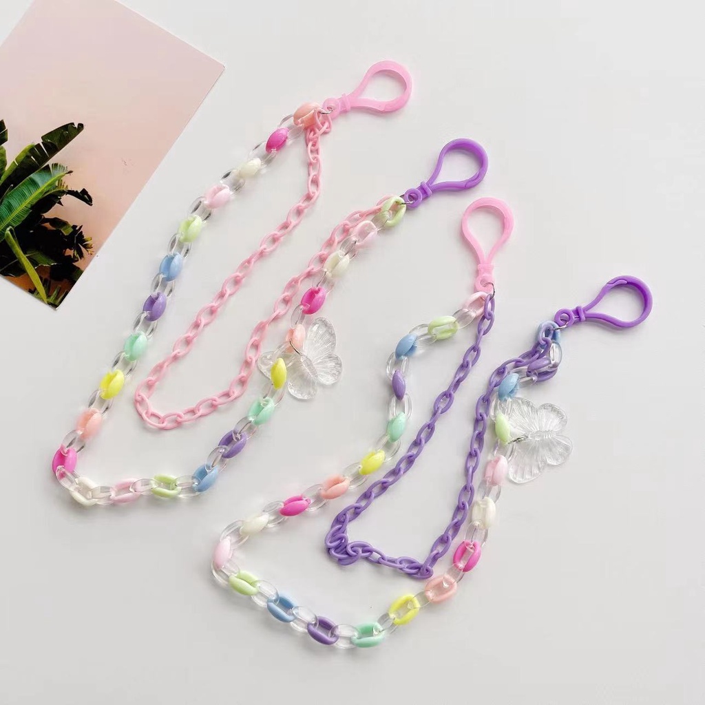 New Style Simple Cartoon Transparent Butterfly Pendant Candy Color Acrylic Belt Hanging Chain Double Layer