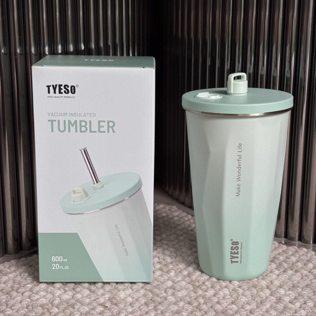 New Tyeso 600ML Coffee Tumbler Gradient Ombre Tyeso Color with StrawHot and Cold Insulated