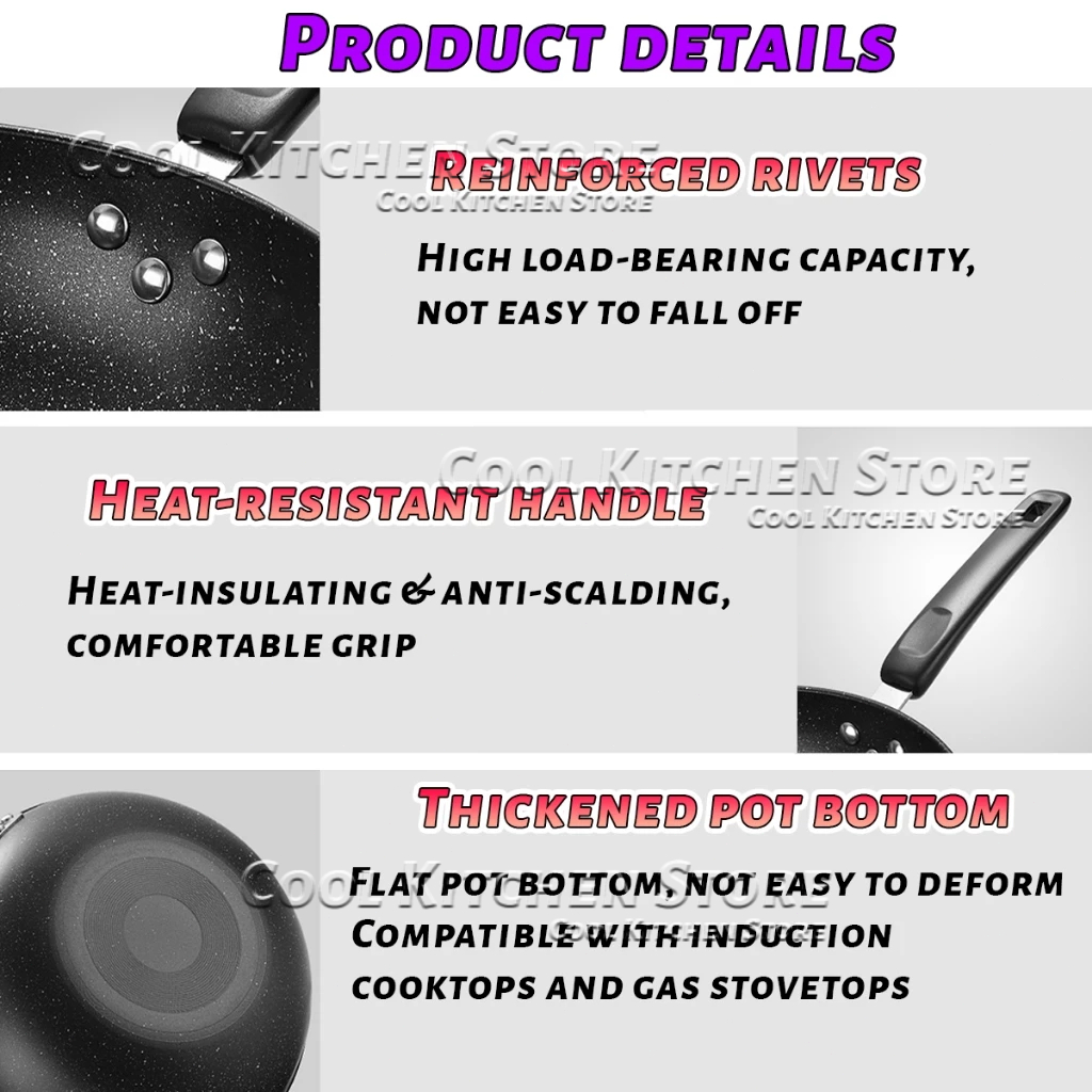 New Upgrade 33CM Big Non-Stick Wok Pan Frying Pan Kitchenware Gas Stove induction Cooker Available