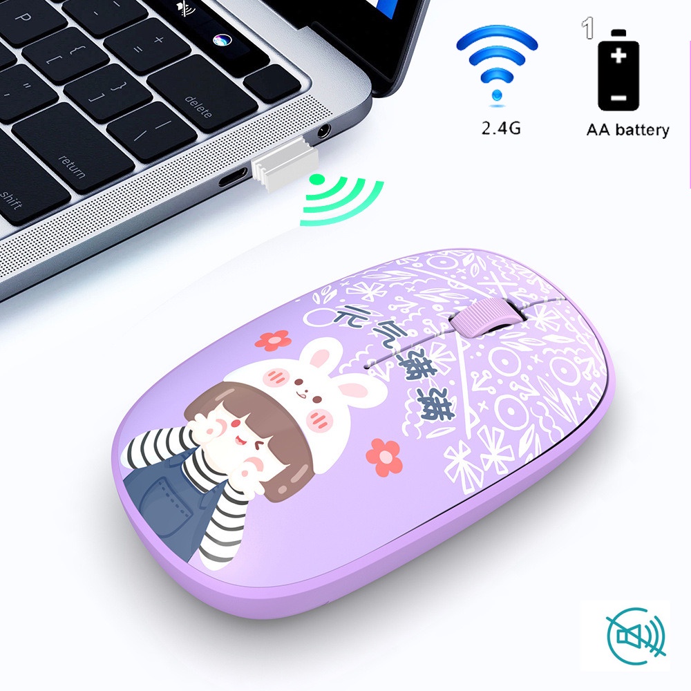 New Wireless Cute Cartoon Mouse 2.4G/ Bluetooth 5.0 Silent Optical Computer Mouse For Laptop PC Girl Gift