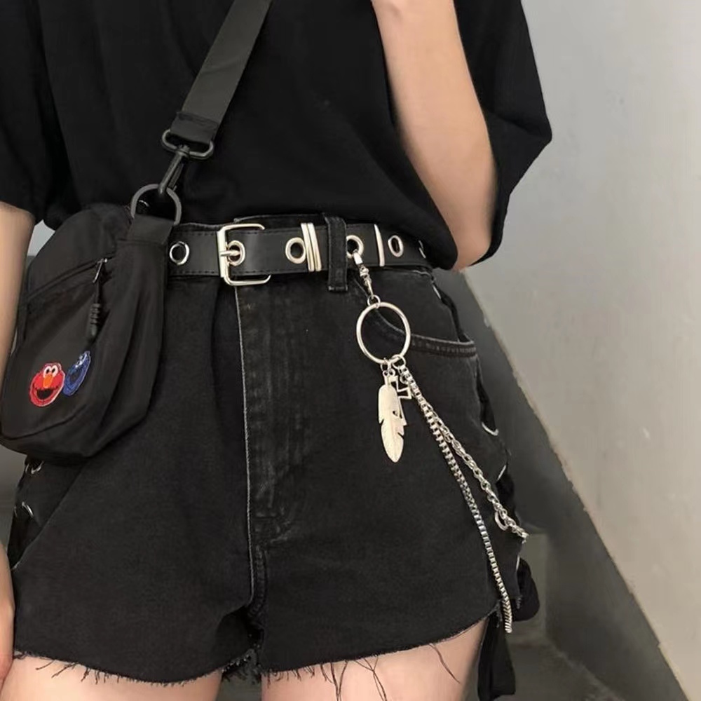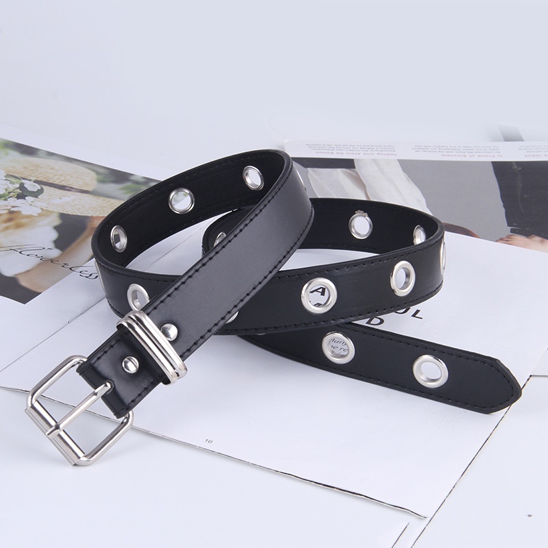 New Women Punk Chain Fashion Personality Cutout Punch-free Leather Belt Adjustable Double Row Blet