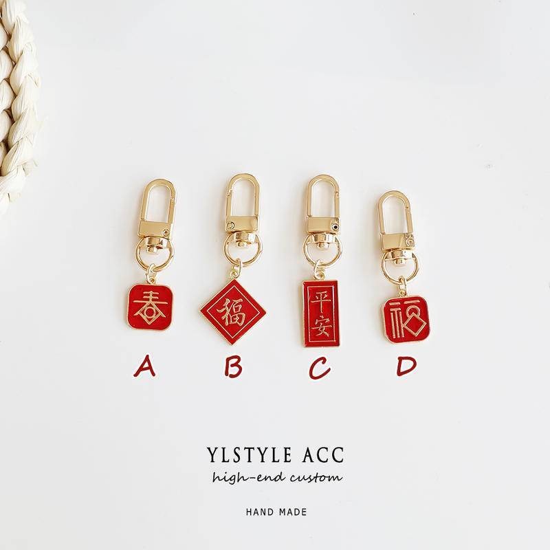 New Year Key Chain Chinese Red Festive Fu Airpods Key Chain Bag Charm Keychain Pendant Accessories Customized Key Chain