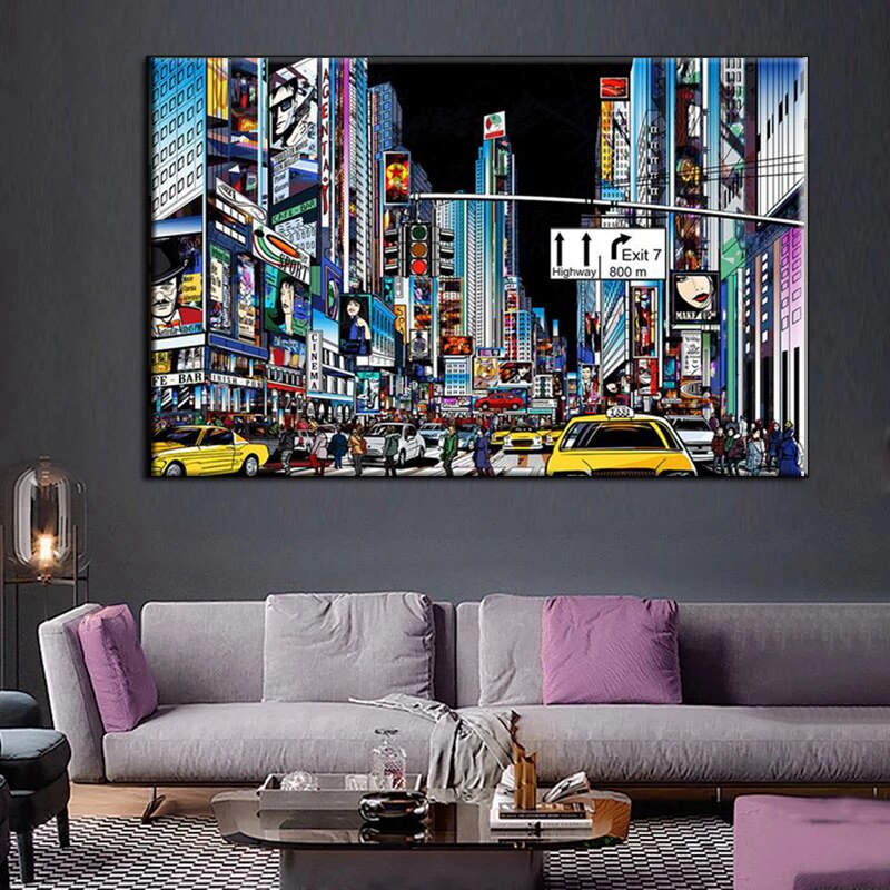 New York City Time Square Building Canvas Painting Modern Art Posters and Prints Cuadros Wall Art Picture for Living Room Decor