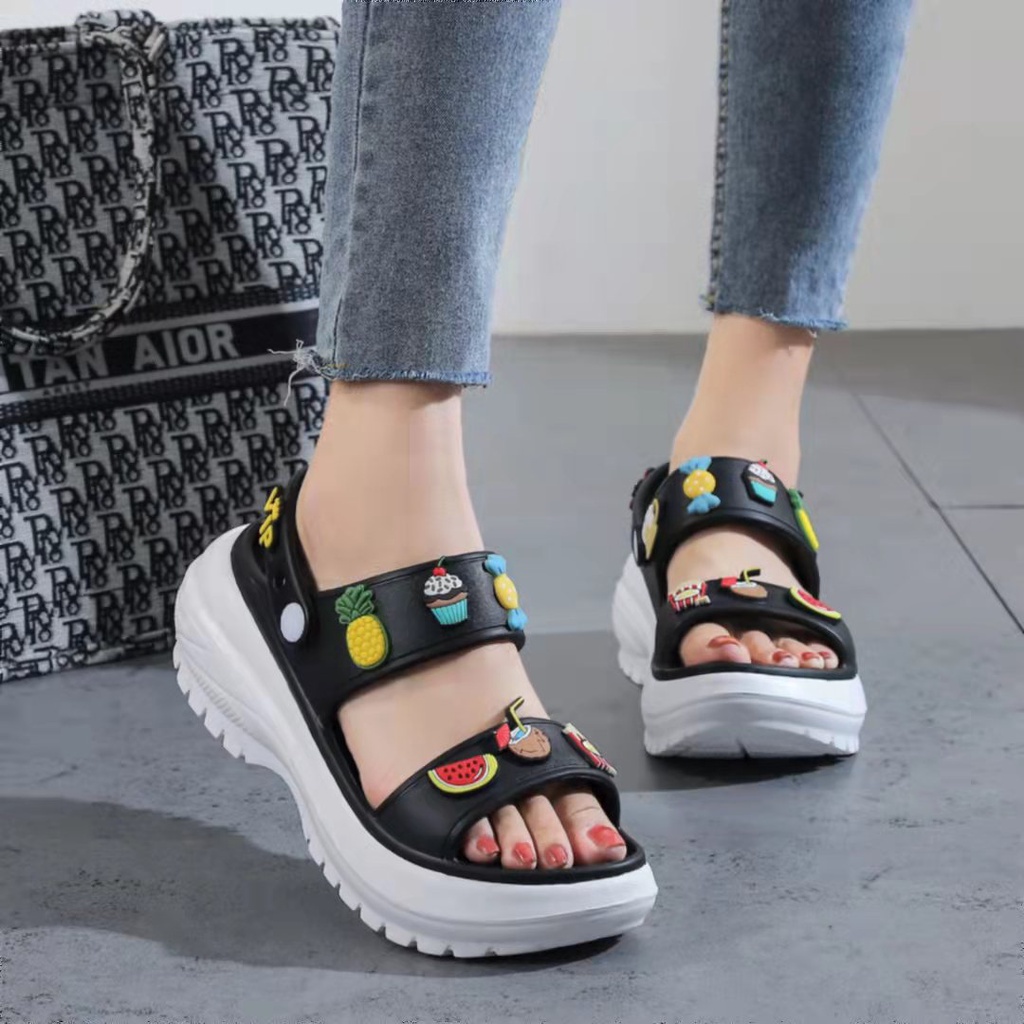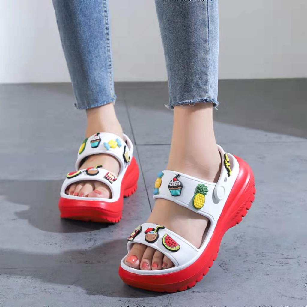 New arrival Crocs fashions platform flat sandals korean Thick bottom slippers for women