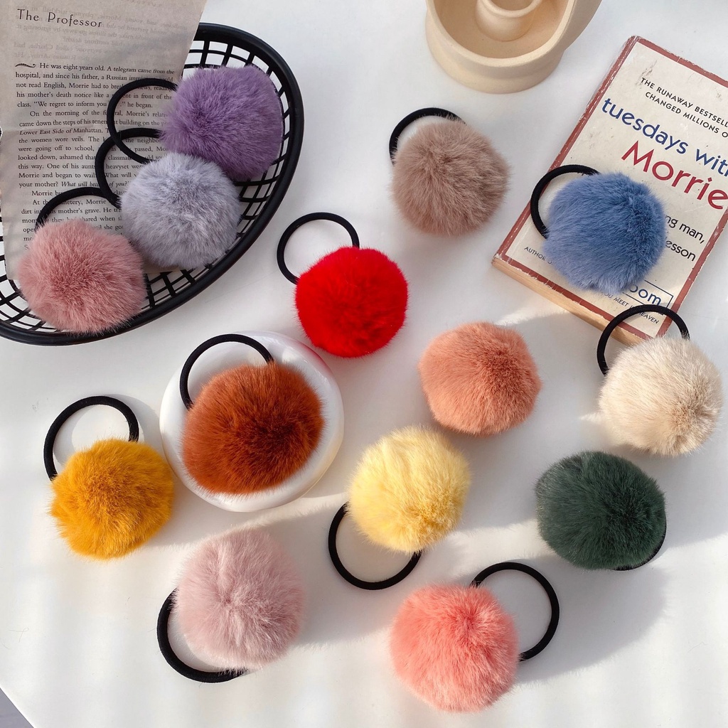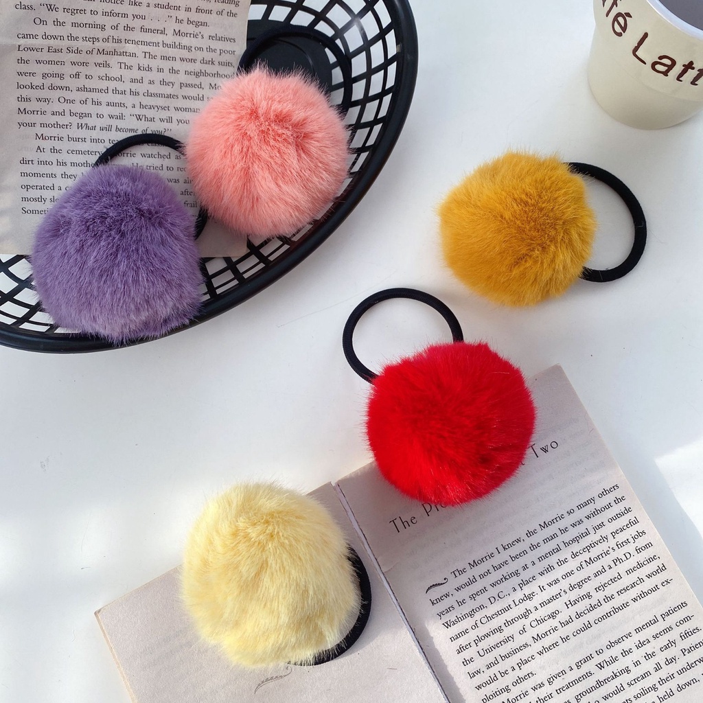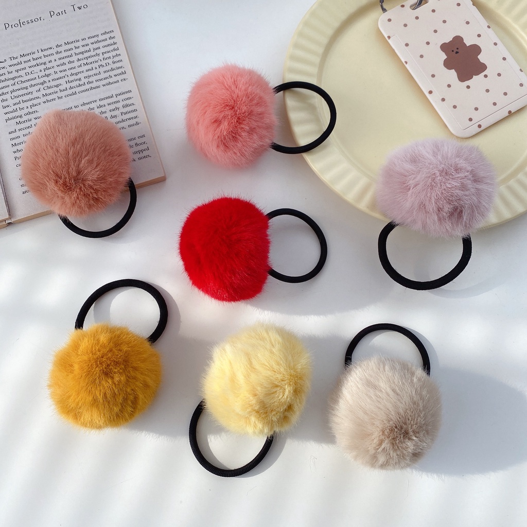 New big hairy ball hairband cute candy rubber band simple plush wild ball head imitation mink hair accessories