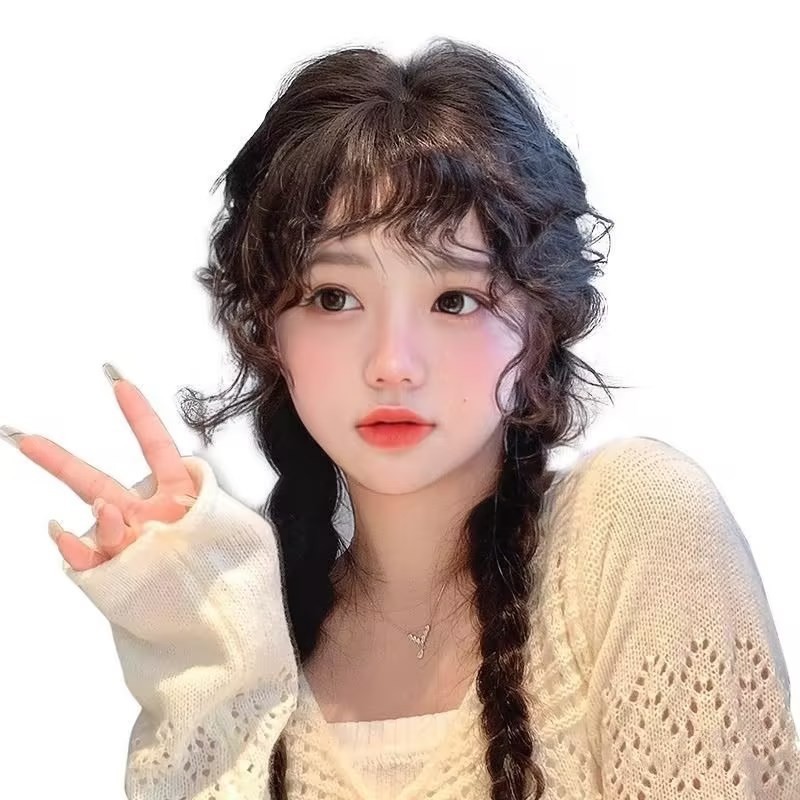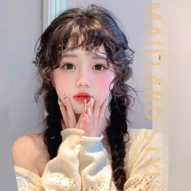 New fashion wig female simulation hair natural forehead wool roll wig piece online celebrity bangs.