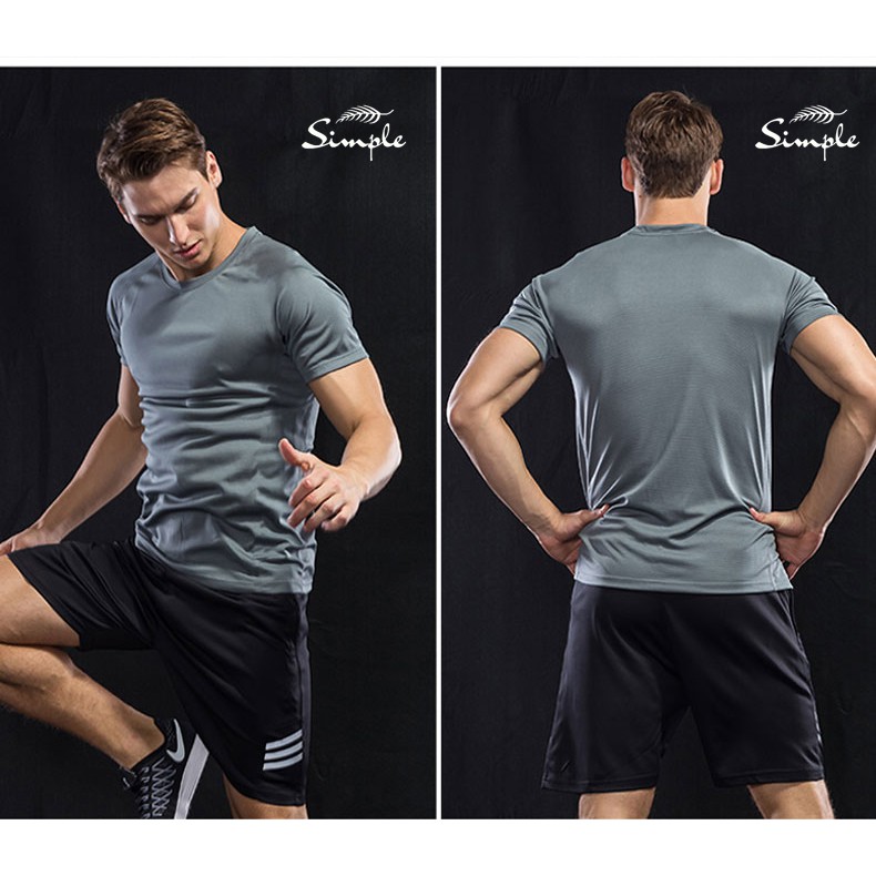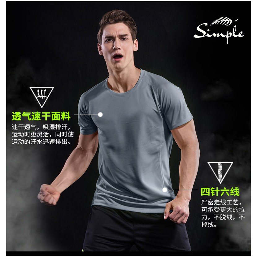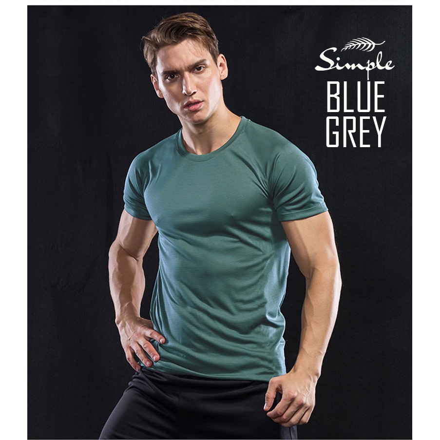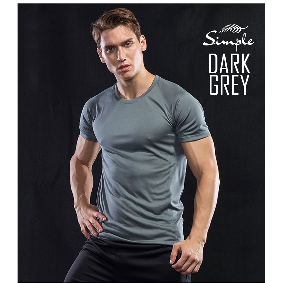 New gray running Elasticity sports fitness gym T shirt mens