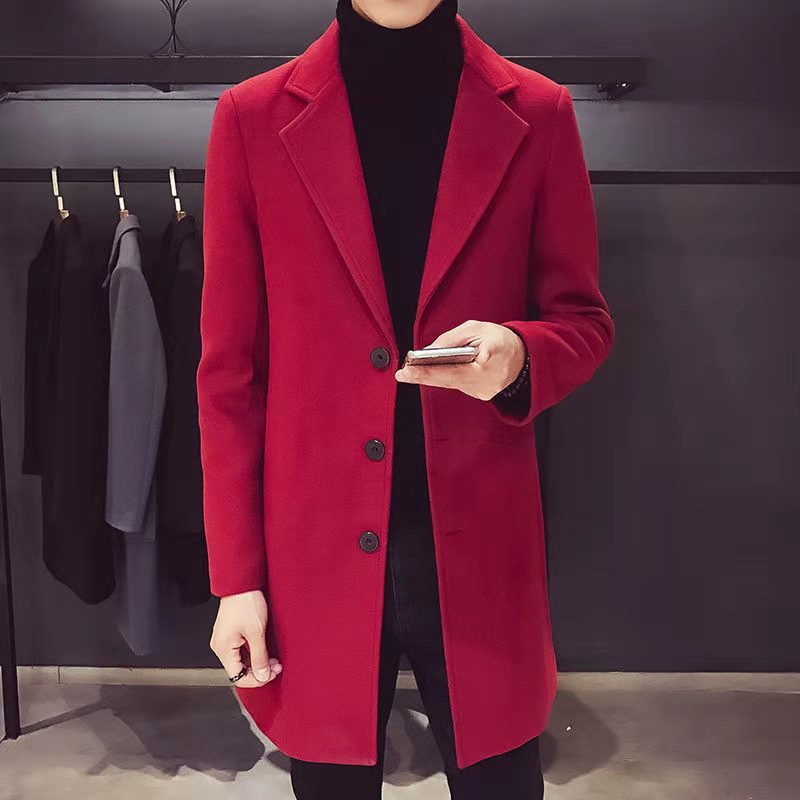New men's Korean style trendy slim mid-length casual trench coat