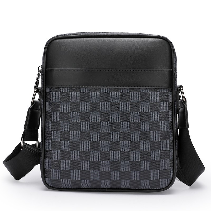 New trendy men's casual plaid shoulder bag, leather sports cross-body bag, small square bag ko197